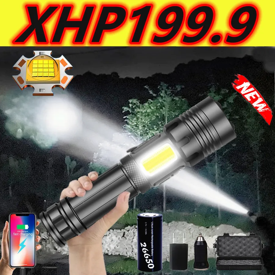 Самый мощный светодиодный фонарик XHP199 с COB матрицей, 16-ядерный тактический фонарь с USB-зарядкой, водонепроницаемый Ультраяркий светильник для кемпинга