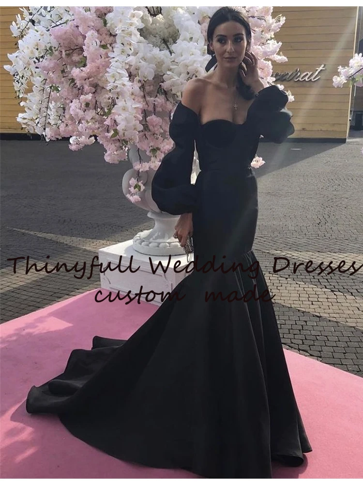 Элегантное Черное вечернее платье с длинным рукавом и юбкой-годе, простое длинное платье с сердечком для торжества, вечеринки, дня рождения, свадебные платья для выпускного вечера, платья