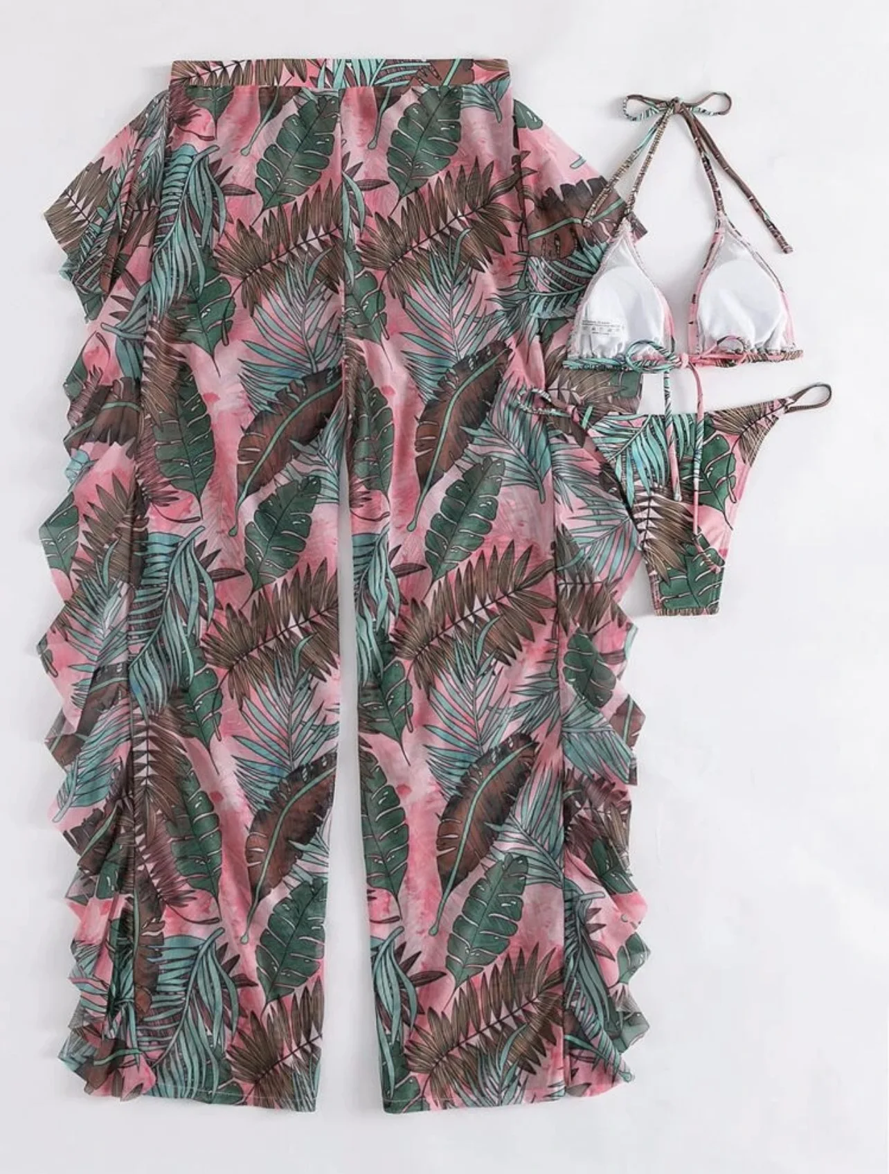 Женская пляжная одежда, прозрачный сетчатый разрез, комплект из 3 п...