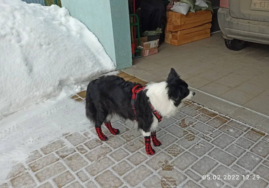 Хорошие носки, вполне можно использовать на зимних прогулках как защиту от снега для длинношерстных собак (снег не застревает на шерсти между пальцами, собаке комфортно). Размер M подошёл для бордер-колли 20 кг, рост 51 см в холке. Быстрая доставка - 12 дней от момента оформления заказа до пункта выдачи (Липецкая область).