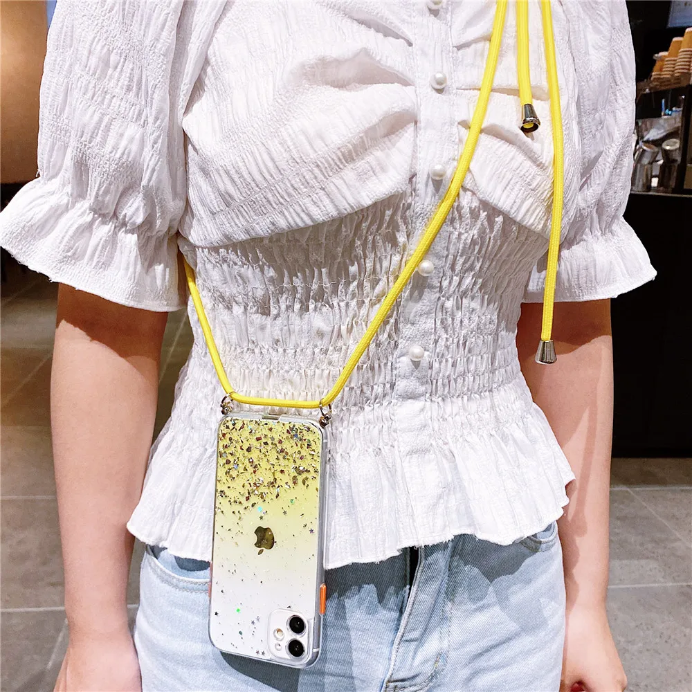 Блестящие силиконовые чехлы для Xiaomi POCO X3 NFC Pro 11 Lite Redmi 10 Note 11 Pro 10Pro 10S, мягкий чехол через плечо, ремешок на шею