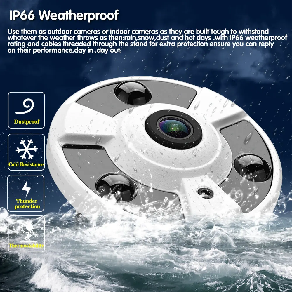 1, Ультра HD 5 Мп дисплей высокой четкости, расширенное H.265 Сжатие видео;2. Ультра HD 5MP POE ip-камера, металлический материал, IP66 водонепроницаемый, подходит для внутреннего и наружного использования, надежная Домашняя безопасность;3. Поддержка 180 360 градусов охватывает каждый угол, питание через Ethernet, подключи и играй, простота установки;4. Поддержка распознавания лица, записи лица, воспроизведения лица, обеспечивает ультра высокое разрешение видео наблюдения, обеспечивая максимальную детализацию и четкость доступны;5. Поддержка аудиозаписи, все камеры встроены в микрофон;6. Поддержка Ultra HD дневного ночного видения;7. Поддержка IR-CUT переключателя двойного фильтра, днем и ночью для достижения мониторинга, цвет не является частичным искажением цвета;8. Поддержка обнаружения движения, оповещения по электронной почте, воспроизведения видео и многоязычности;9. Поддержка Android,Iphone,Ipad,PC,VMS,P2P view;10. Удаленный доступ в любом месте, в любое время;11, подходит для всех видов мест применения