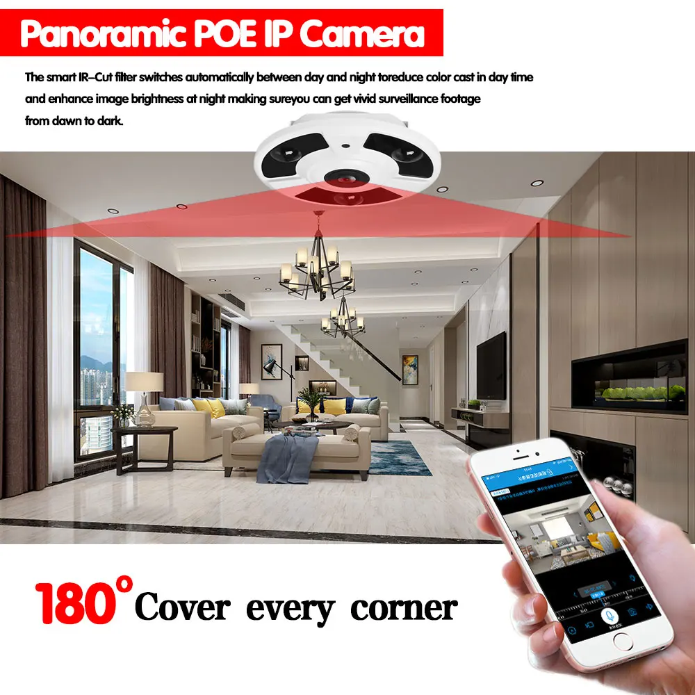 H.265 рыбий глаз POE IP камера 8MP 5MP CCTV безопасности XMEye приложение 180 градусов 360 градусов Рыбий глаз объектив 1080P Крытый Купол наблюдения панорамная камера