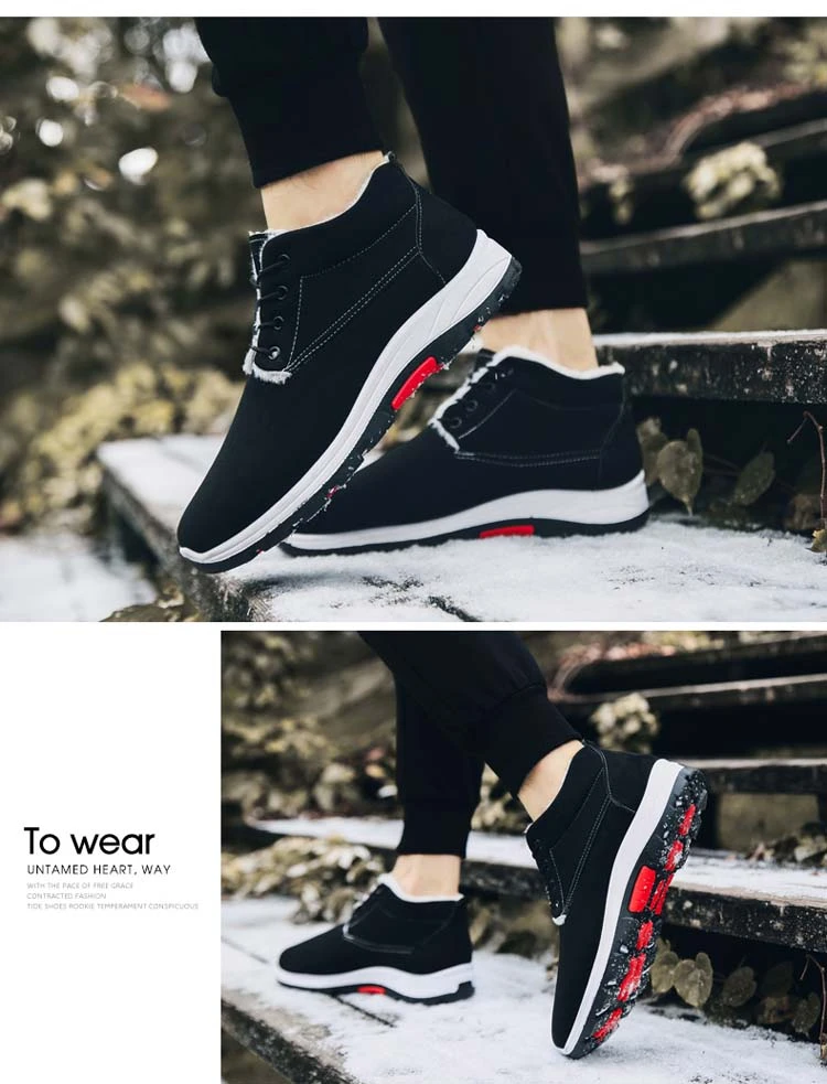 Мужские повседневные кожаные ботинки, зимние теплые плюшевые Прогулочные кроссовки, модные мужские уличные Нескользящие ботинки для снега, Мужская обувь для мужчин