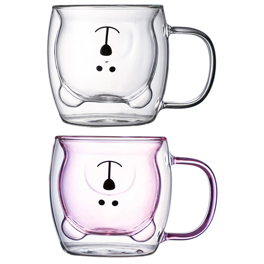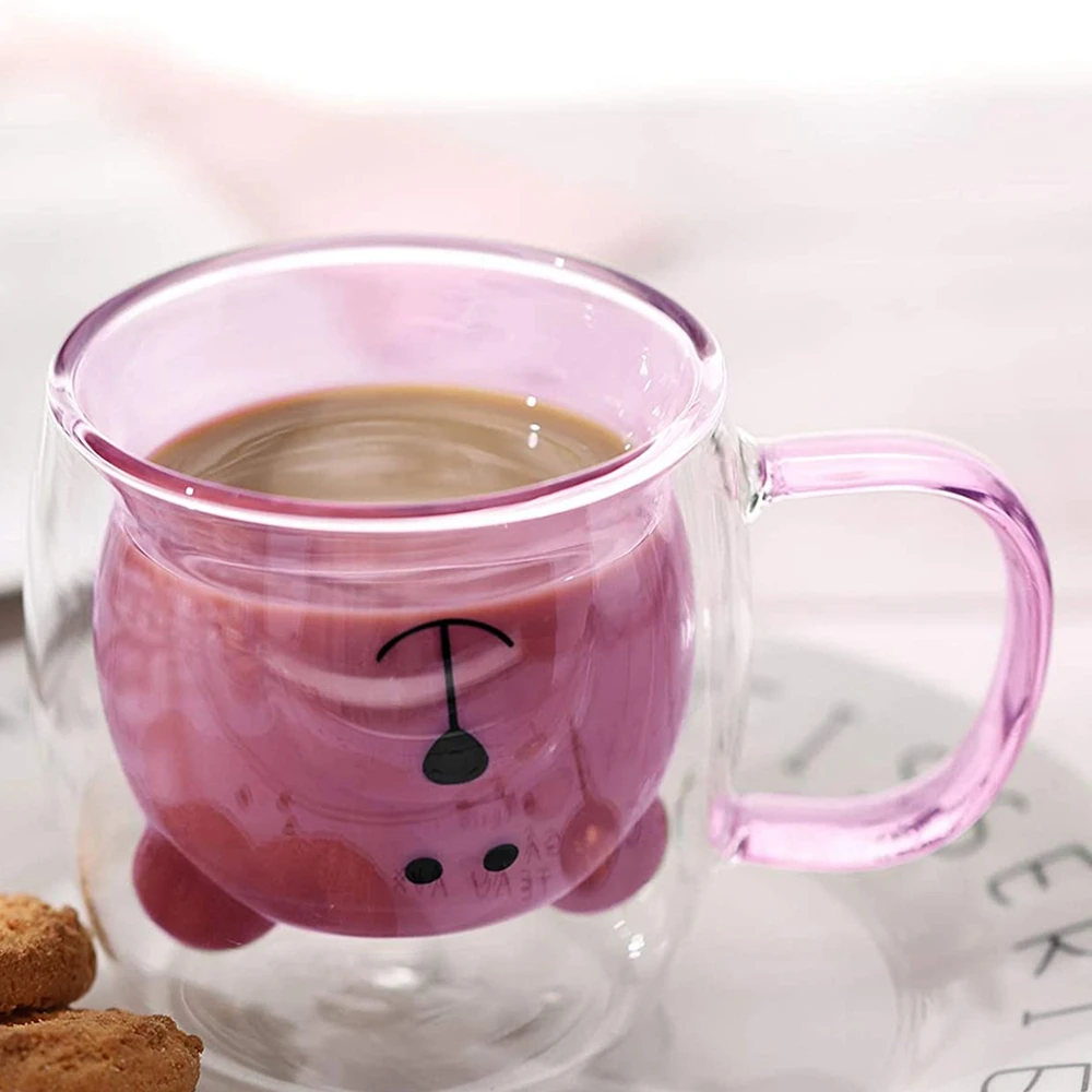 Кофейные кружки с милым медведем, двойная стеклянная чашка с животным, двухслойная кружка для молока, сока, чая, чашка, женский подарок на день Святого Валентина и Рождество