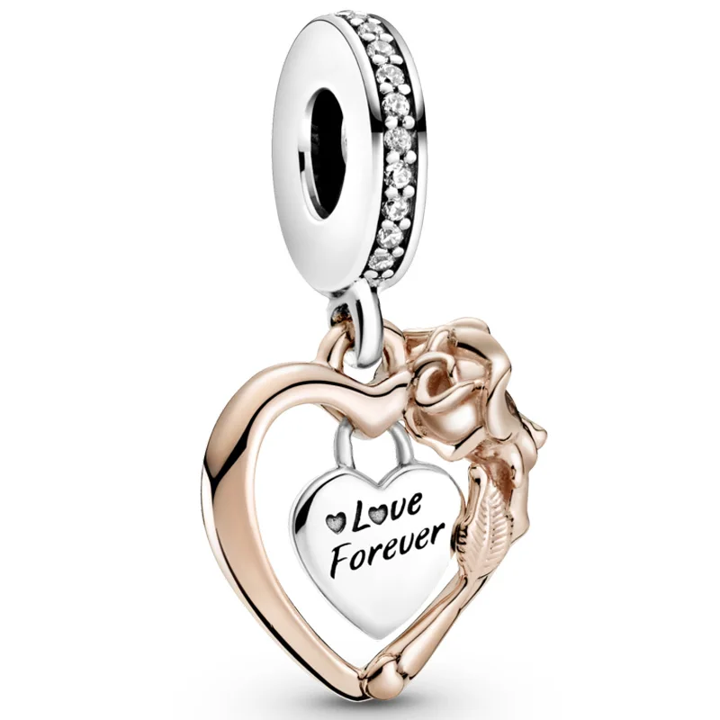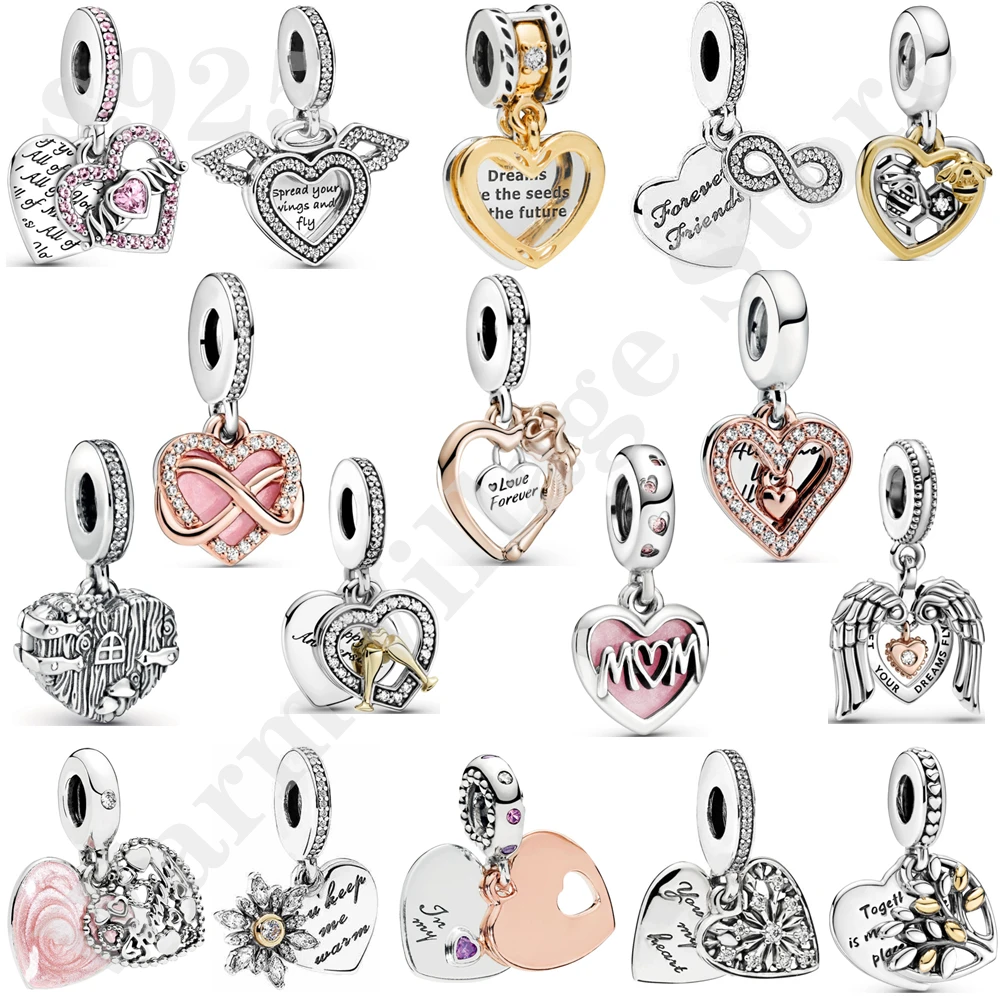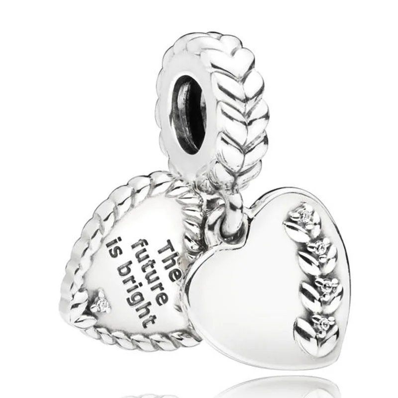 Блестящий женский браслет из серебра с бусинами в форме сердца