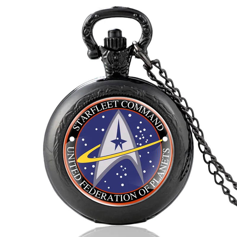 Черный классический Звездный Флот командное стекло кабошон кварцевые карманные часы винтажные мужские женские часы с подвеской ожерелье Подарки