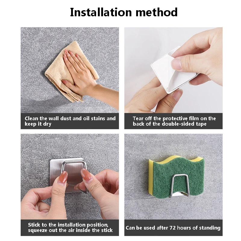 Стеллаж для слива губки из нержавеющей стали для кухни, самоклеящийся стеллаж, органайзер, настенные крючки для кухни и ванной, домашнее хранилище