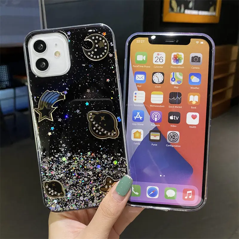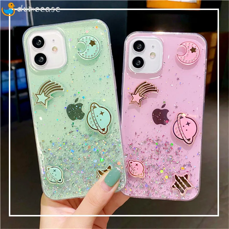 Блестящий чехол со звездами для телефона IPhone 13 12 Mini 11 Pro Max X XS Max XR 5s 6s 7 8 Plus SE, милые наклейки, мягкий блестящий чехол из ТПУ