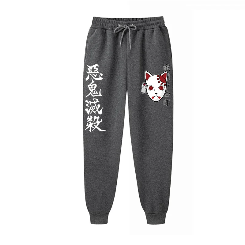 Брюки мужскиеженские с аниме принтом, теплые флисовые штаны для бега, рассекающие демонов, повседневные свободные спортивные штаны в стиле Харадзюку