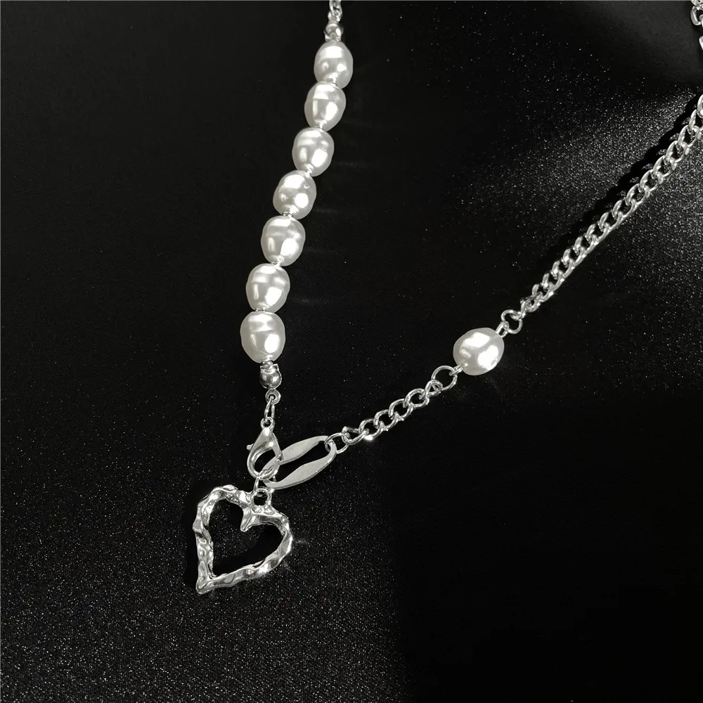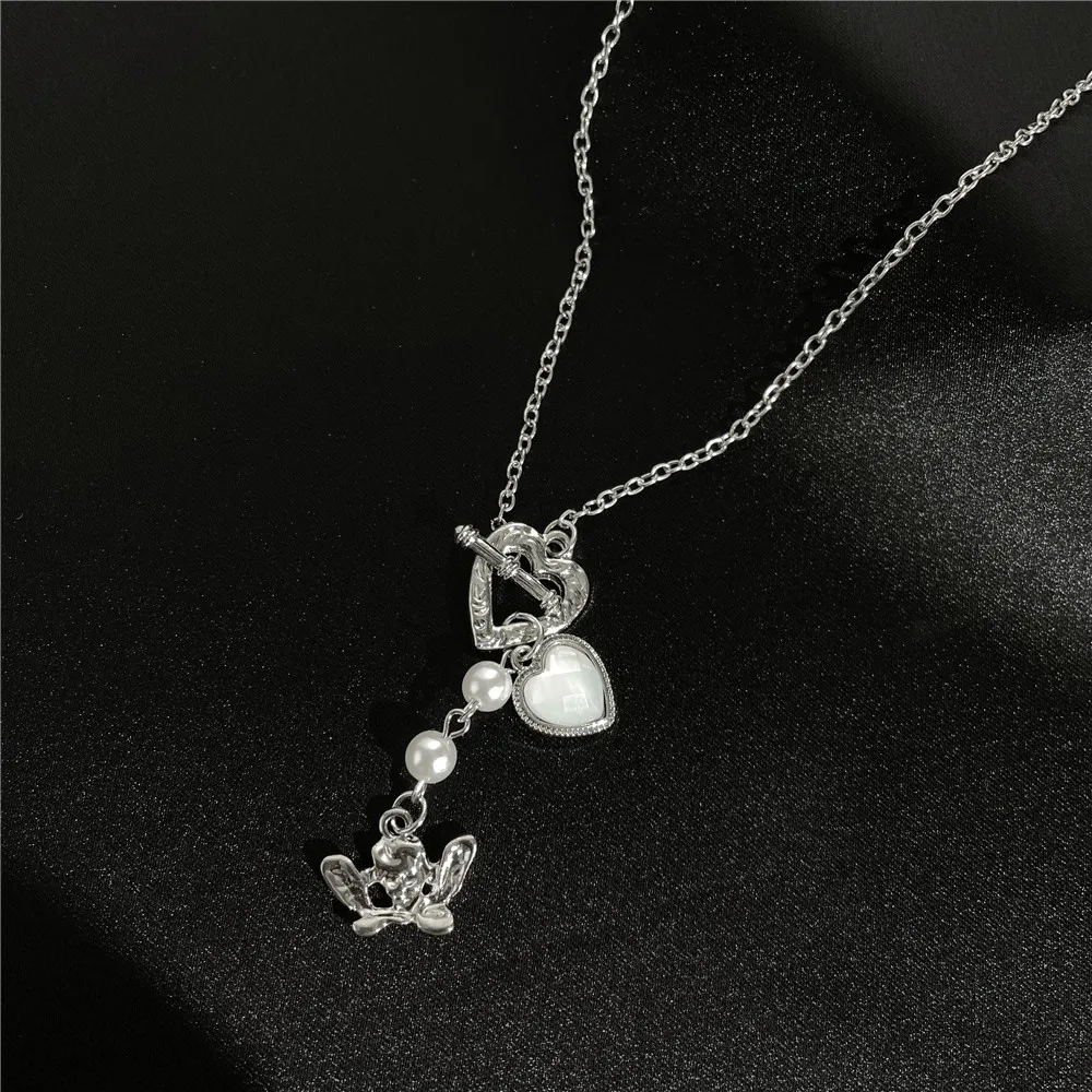 Винтажное жемчужное колье Kpop в стиле барокко, подвеска в форме сердца и ангела, ожерелье-цепочка до ключиц для женщин, классное Ювелирное Украшение в стиле эмо, панк, гранж