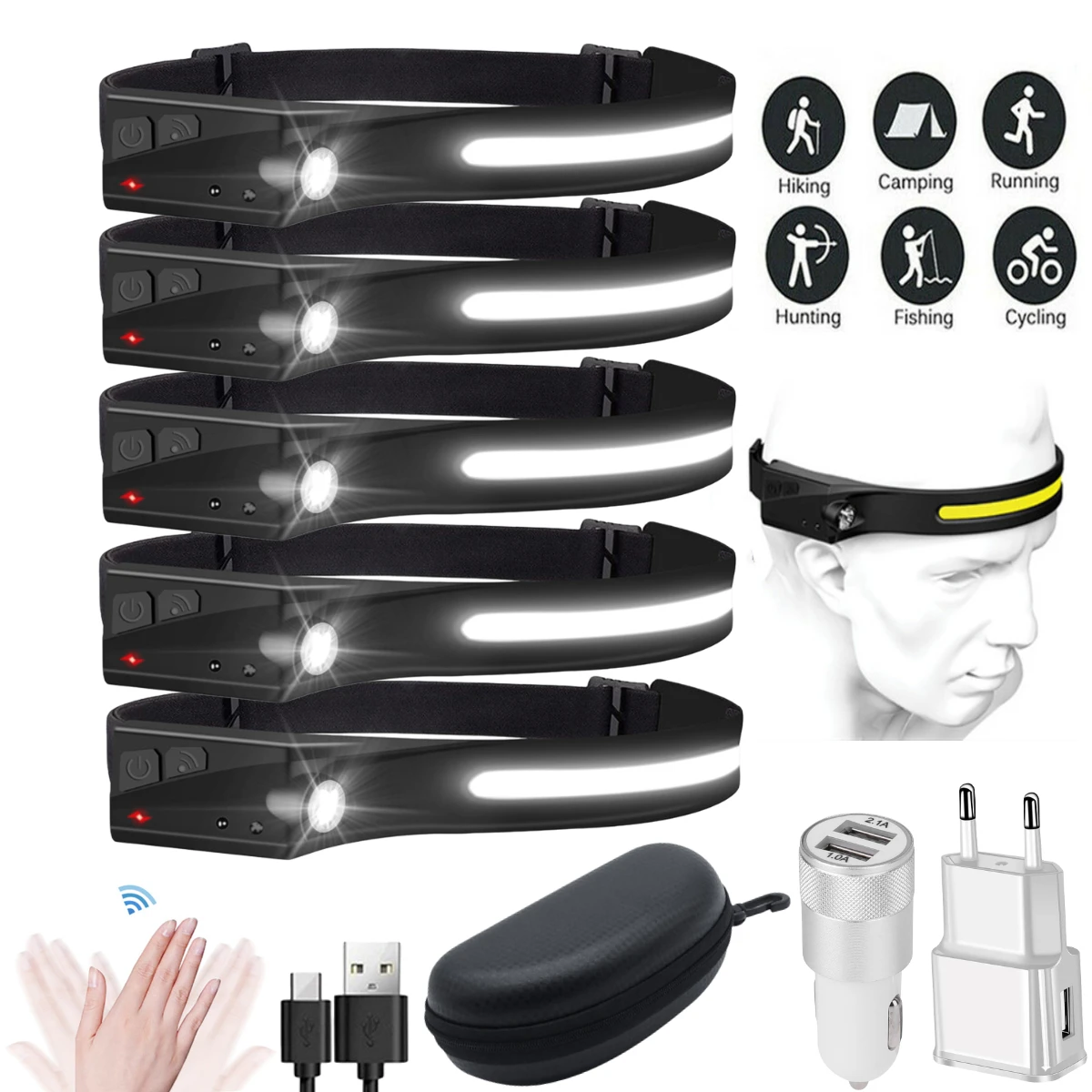 Светодиодный головной фонарь COB с датчиком и встроенным аккумулятором, головной фсветильник рь с USB-зарядкой, 5 режимов освещения, светильник