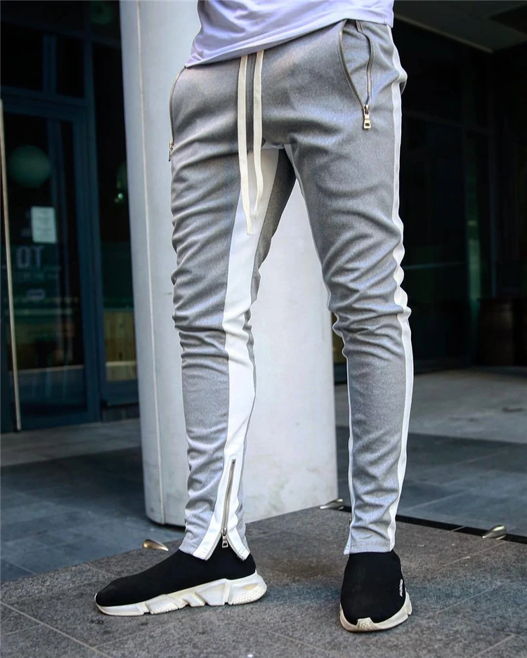 Леггинсы мужские, полосатые, на молнии, с двумя карманами