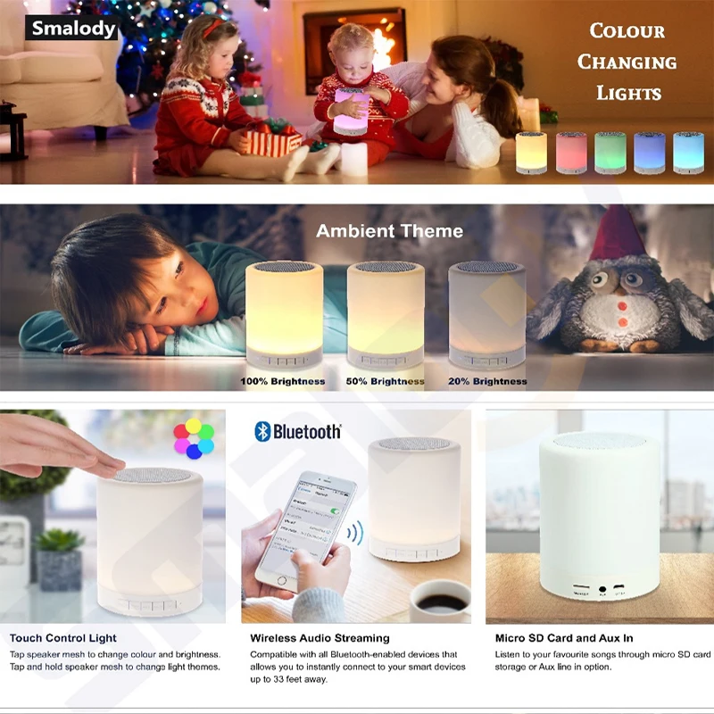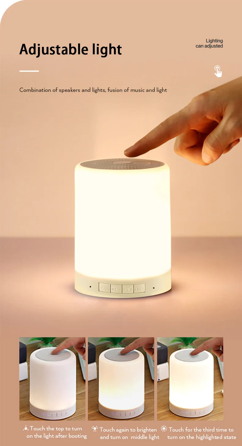 1. Интеллектуальная совместимость, быстрое Сопряжение Bluetooth-совместимое воспроизведение, стерео качество звука без потерь.2. Сенсорный pat для регулировки светильник, три класса яркости, красочный цвет, ночной Светильник для сна.3. Встроенный микрофон, громкоговоритель, технология шумоподавления.