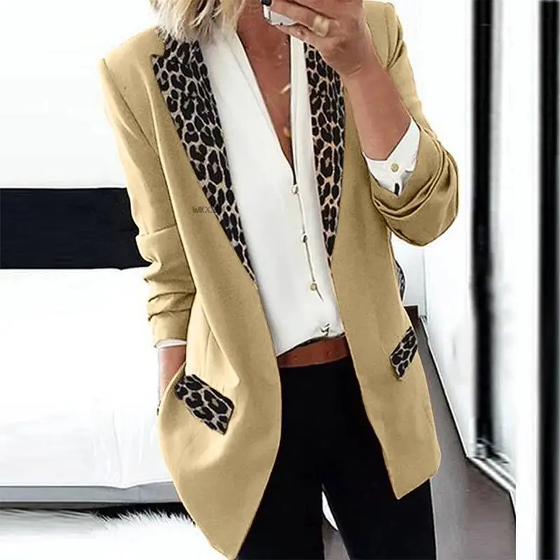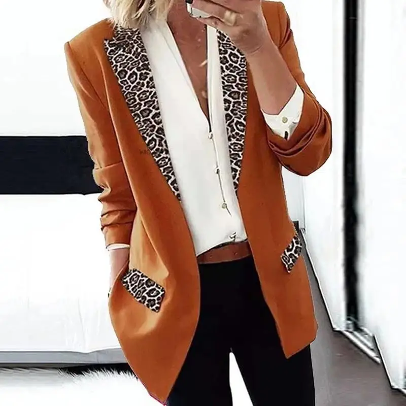 Женский блейзер с отложным воротником, повседневный офисный блейзер с длинным рукавом и леопардовым принтом, Осень-зима