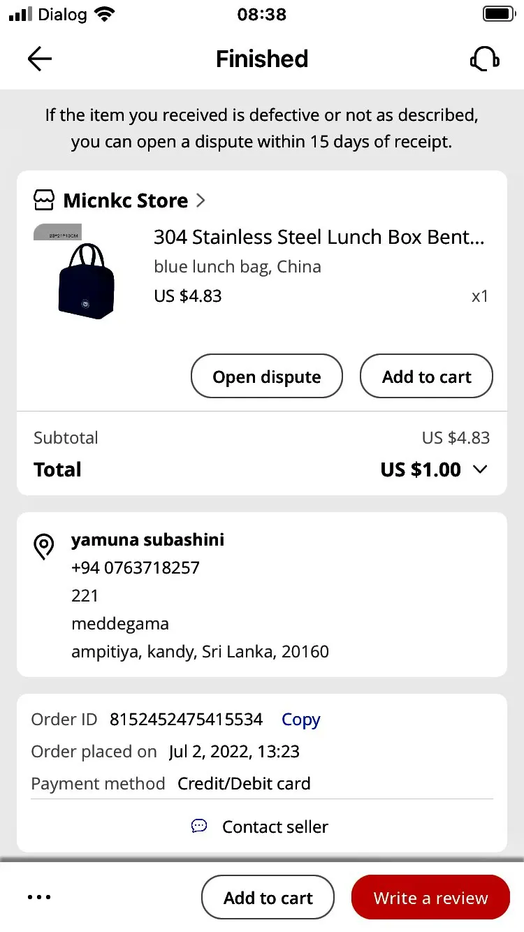 Страна: LK Color: blue lunch bag Ships From: China Доставка: Cainiao Super Economy for Special Goods 27.04.2022