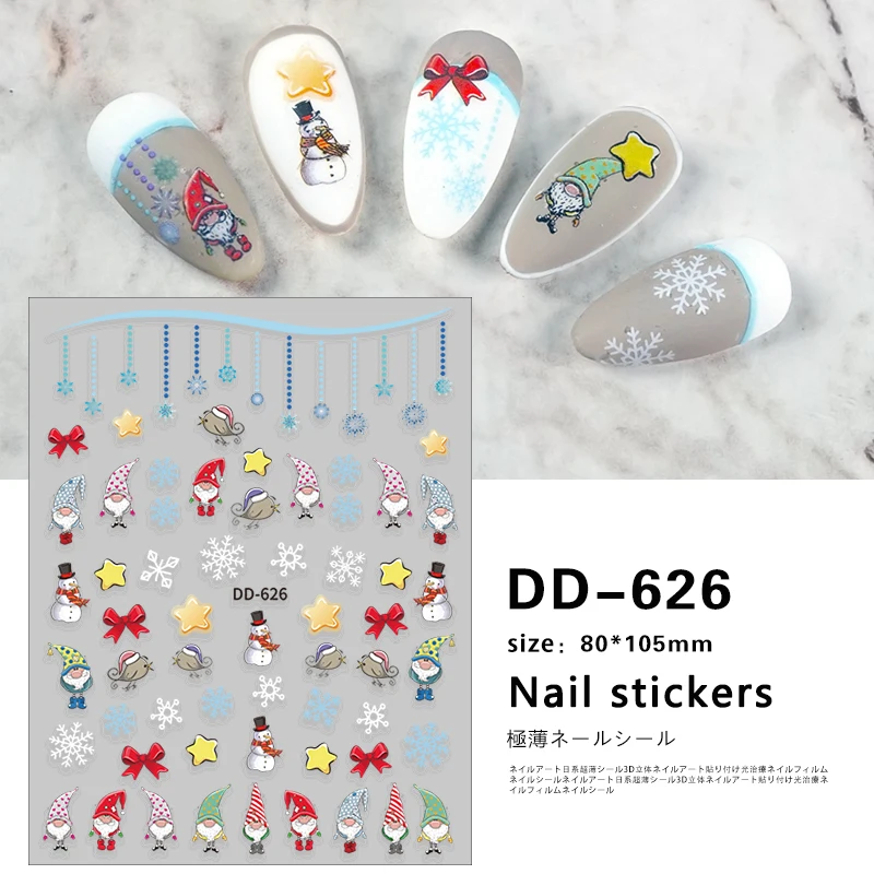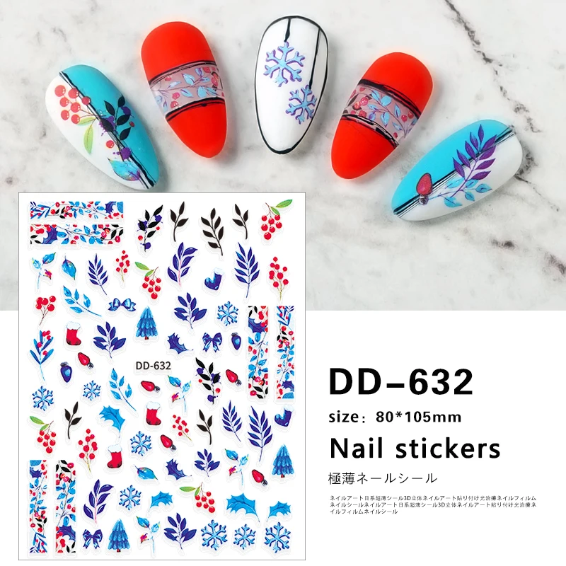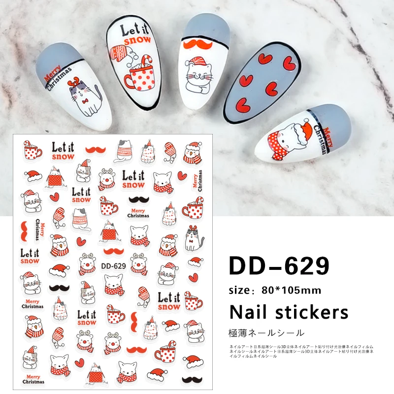 5D супер милые кавайные наклейки для ногтей, самоклеющиеся цветы/богемные снежные наклейки для дизайна ногтей, 1 лист мультяшных наклеек # % &