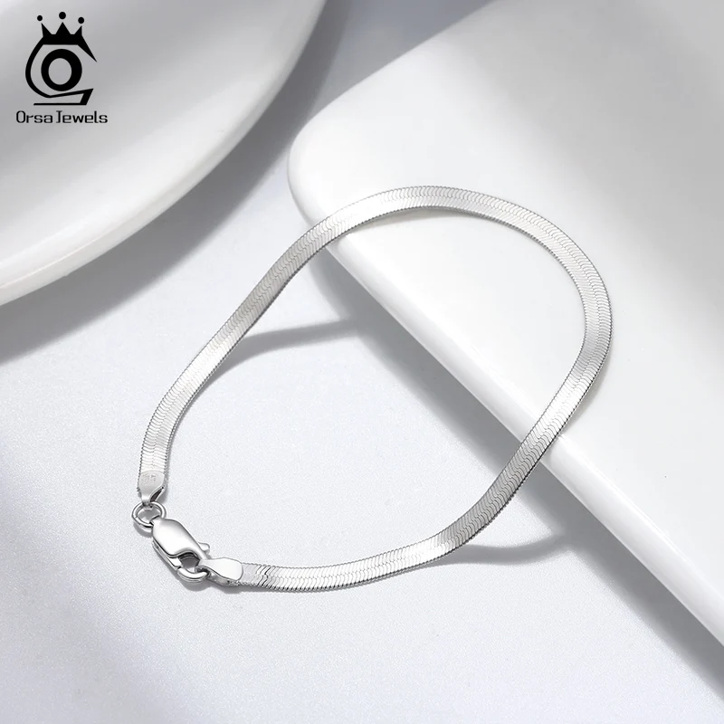 ORSA JEWELS итальянский 4,5 мм гибкий плоский браслет-цепочка в елочку для женщин, цельный браслет-цепочка из стерлингового серебра 925 пробы, ювелирное изделие SB107