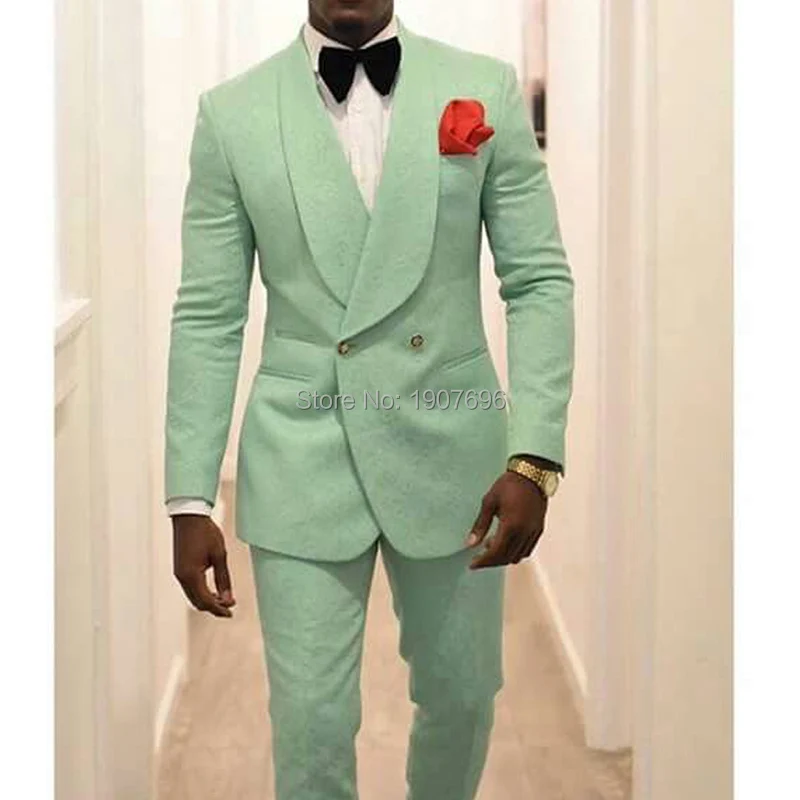 Мятно-зеленый приталенный мужской костюм с двубортным смокингом для свадьбы, смокинг жениха, комплект из 2 предметов, пиджак, брюки, одежда для выступлений на выпускной$91,99