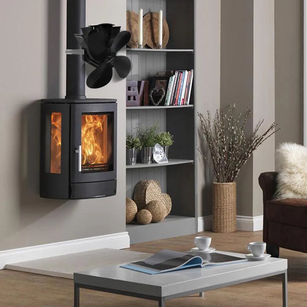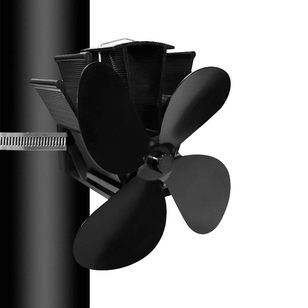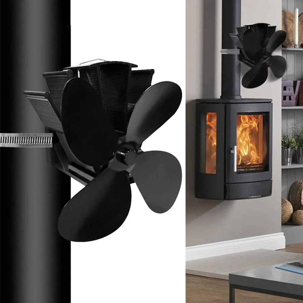 Универсальный семейный вентилятор для плиты с 4 лопастями, алюминиевый тепловой вентилятор для дровяной плиты, энергосберегающий вентилятор для дровяной горелки