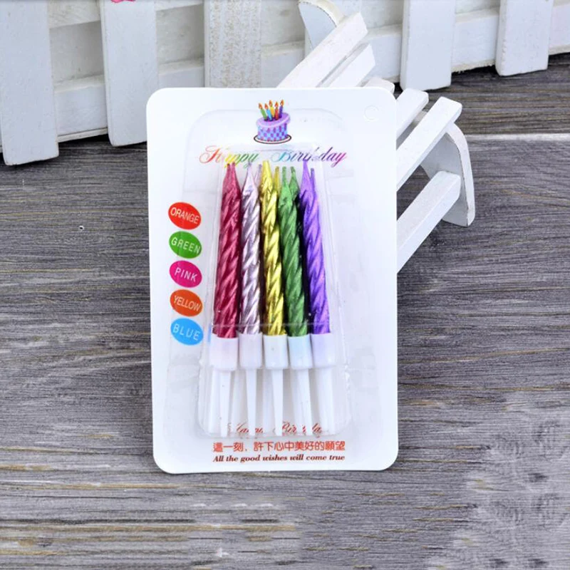 10 шт.карточка, свечи для торта, металлические детские свечи для дня рождения, длинные тонкие свечи в держателях для дня рождения, свадьбы