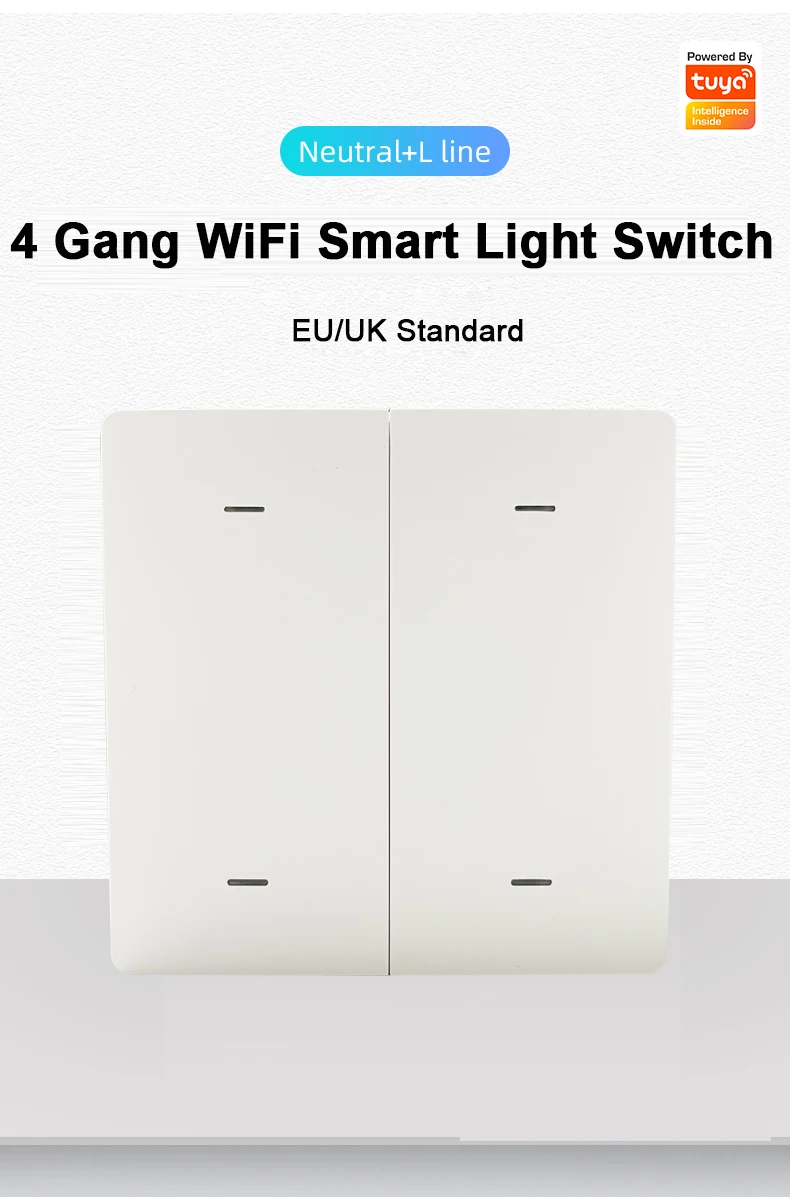 Умный Wi-Fi переключатель Lonsonho Tuya, 4 клавиши, ЕС, Великобритания, 220 В, с нейтральным беспроводным нажатием светильник выключатель света, стиль Google Home