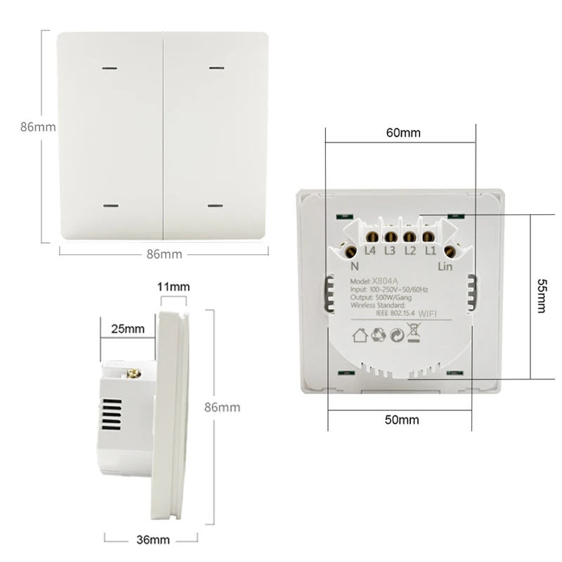 Умный переключатель Lonsonho Tuya Zigbee, 4 клавиши, ЕС, Великобрит...