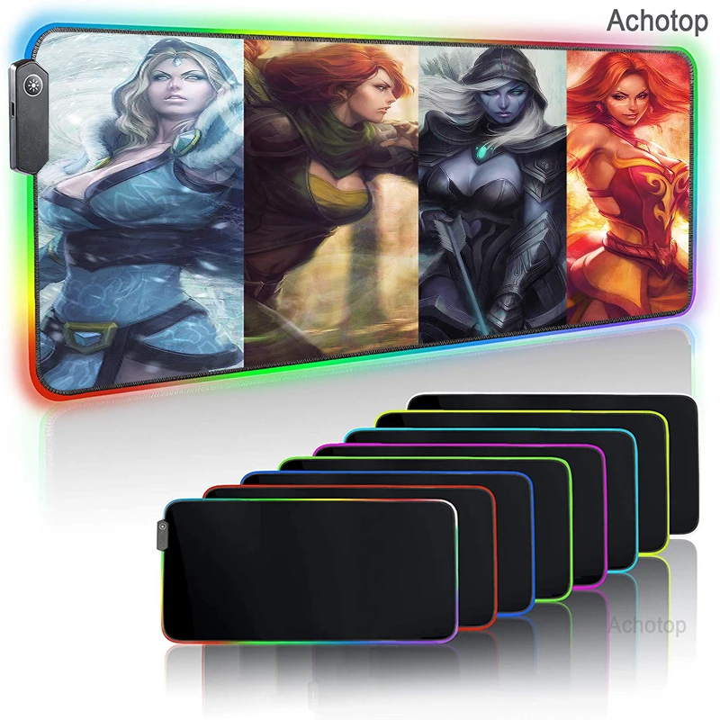 Игровой коврик для мыши Dota 2 RGB, большой размер XXL, игровой коврик для мыши, коврик со светодиодсветодиодный подсветкой из натурального каучука для клавиатуры, игрового компьютера, рождественский подарок