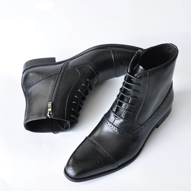 Мужские ботинки на шнуровке, с боковой молнией и перфорацией