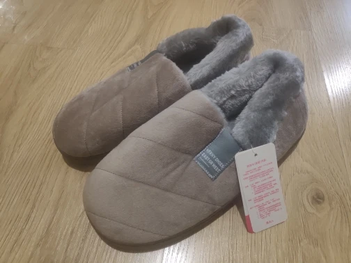 получил тапки, качество хорошее за эту цену, но есть нюансы: цвет ткани светлее, чем на фото в описании. Ткань с ворсом и на тапках пошита в разные стороны, от этого кажется, что тапки сшиты из разной ткани или разного цвета. Подошва тонкая, простой пластик, стучит по ламинату, насколько хватит посмотрим, жена заказывала на дачу, пойдет. Заказали 41 размер, носит 38-39 (245мм) подошли хорошо.