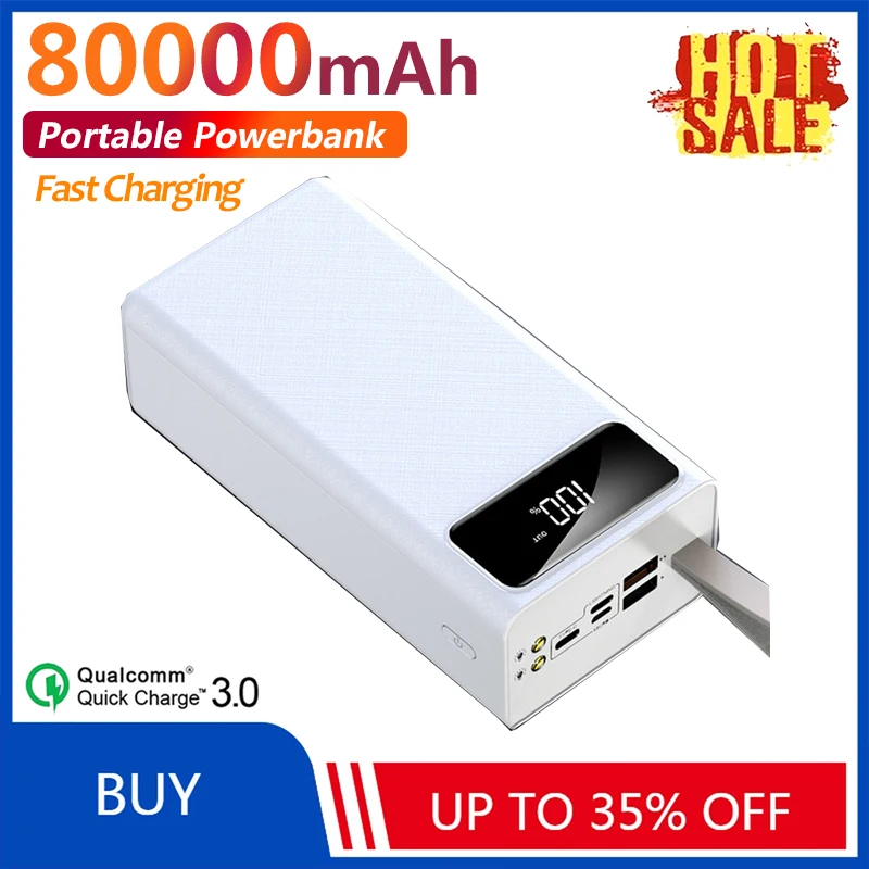 Внешний аккумулятор с цифровым дисплеем, 80000 мАч