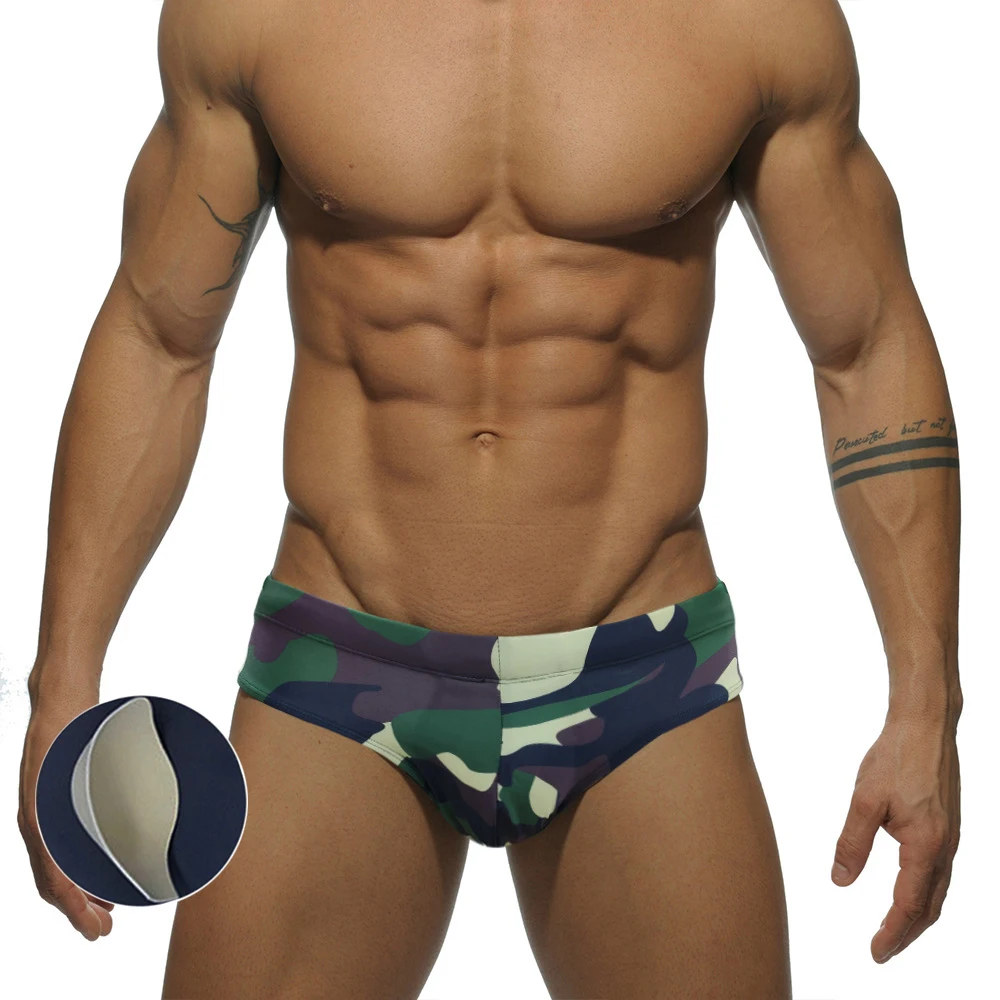 Новые камуфляжные мужские плавки с пуш-подушками и низкой талией, сексуальное бикини, Европейская и американская мода, пляжный спортивный купальник для серфинга