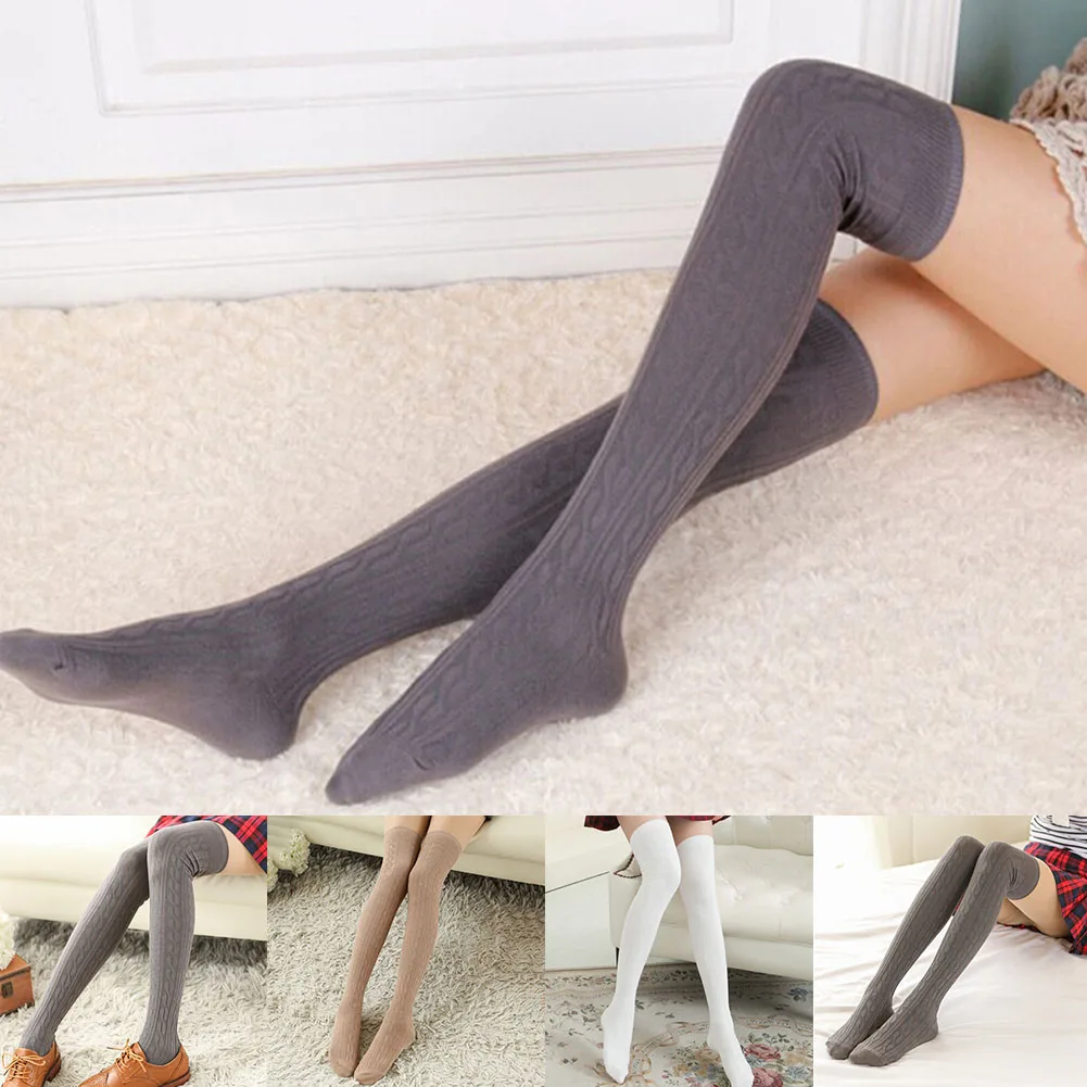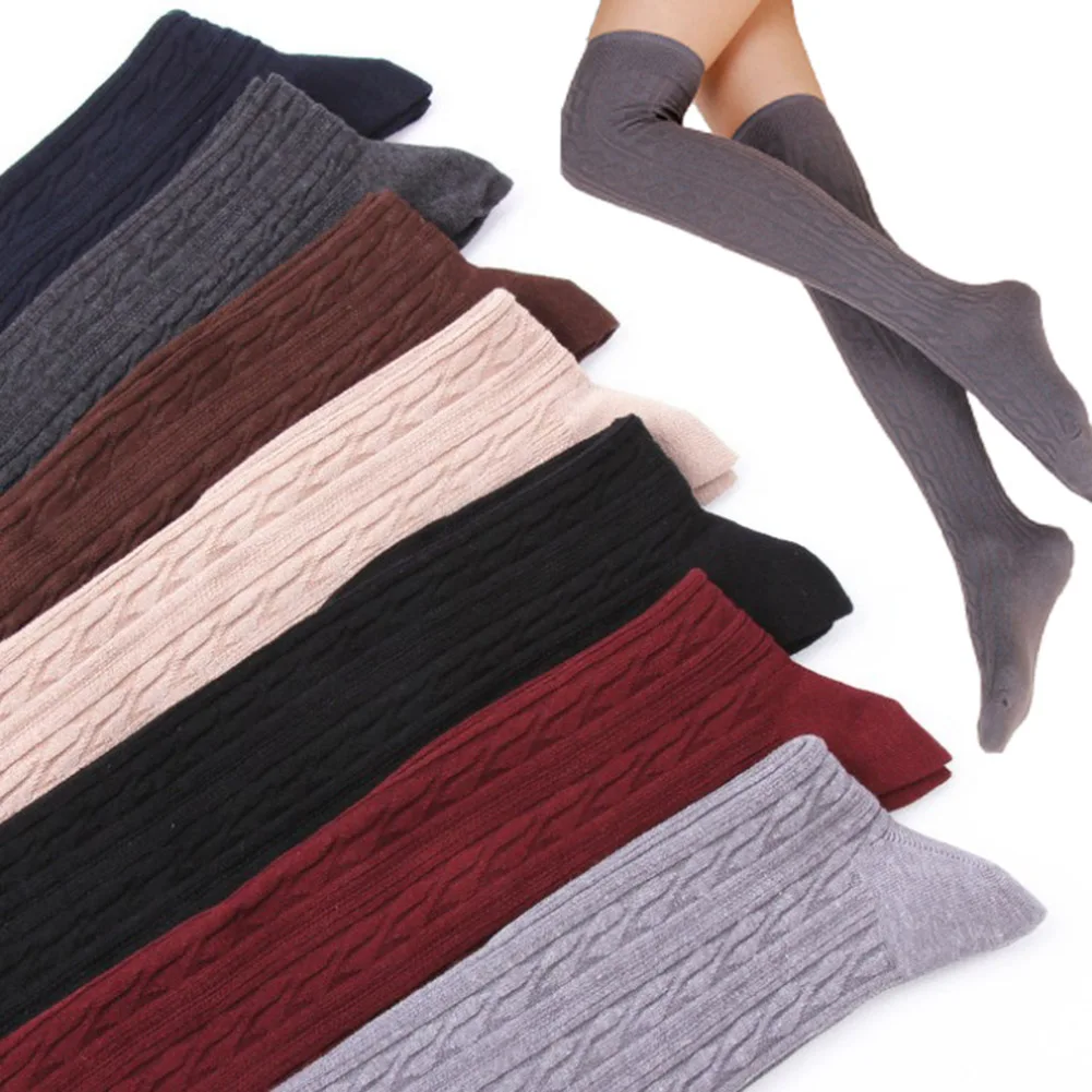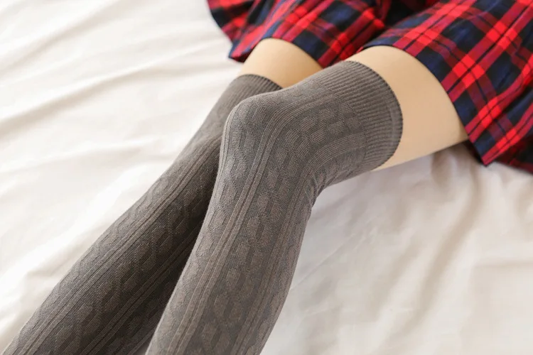 Женские Соблазнительные теплые чулки выше колена, однотонные повседневные жаккардовые теплые зимние хлопковые чулки до бедра