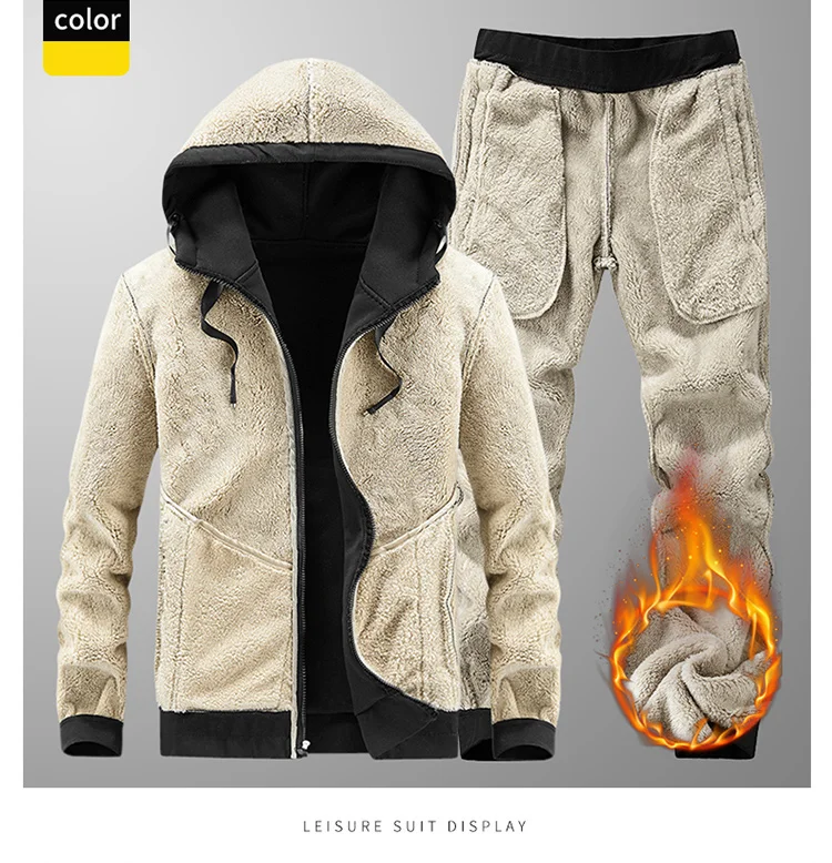 Мужской зимний флисовый спортивный костюм, толстовка с капюшоном и ...