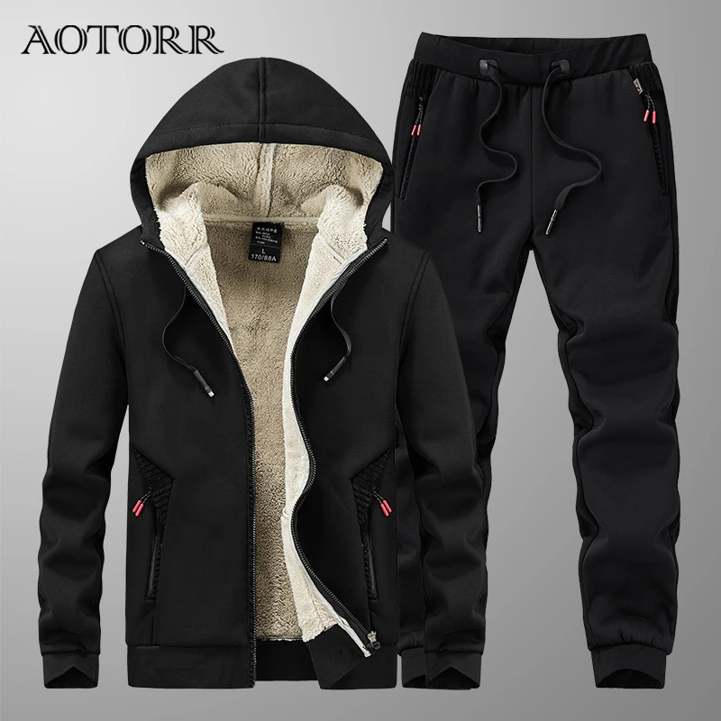 Мужской спортивный костюм с капюшоном, однотонный зимний костюм для мужчин, Толстая Теплая Повседневная куртка и спортивные штаны, комплект из 2 предметов, новая верхняя одежда, размер 6XL