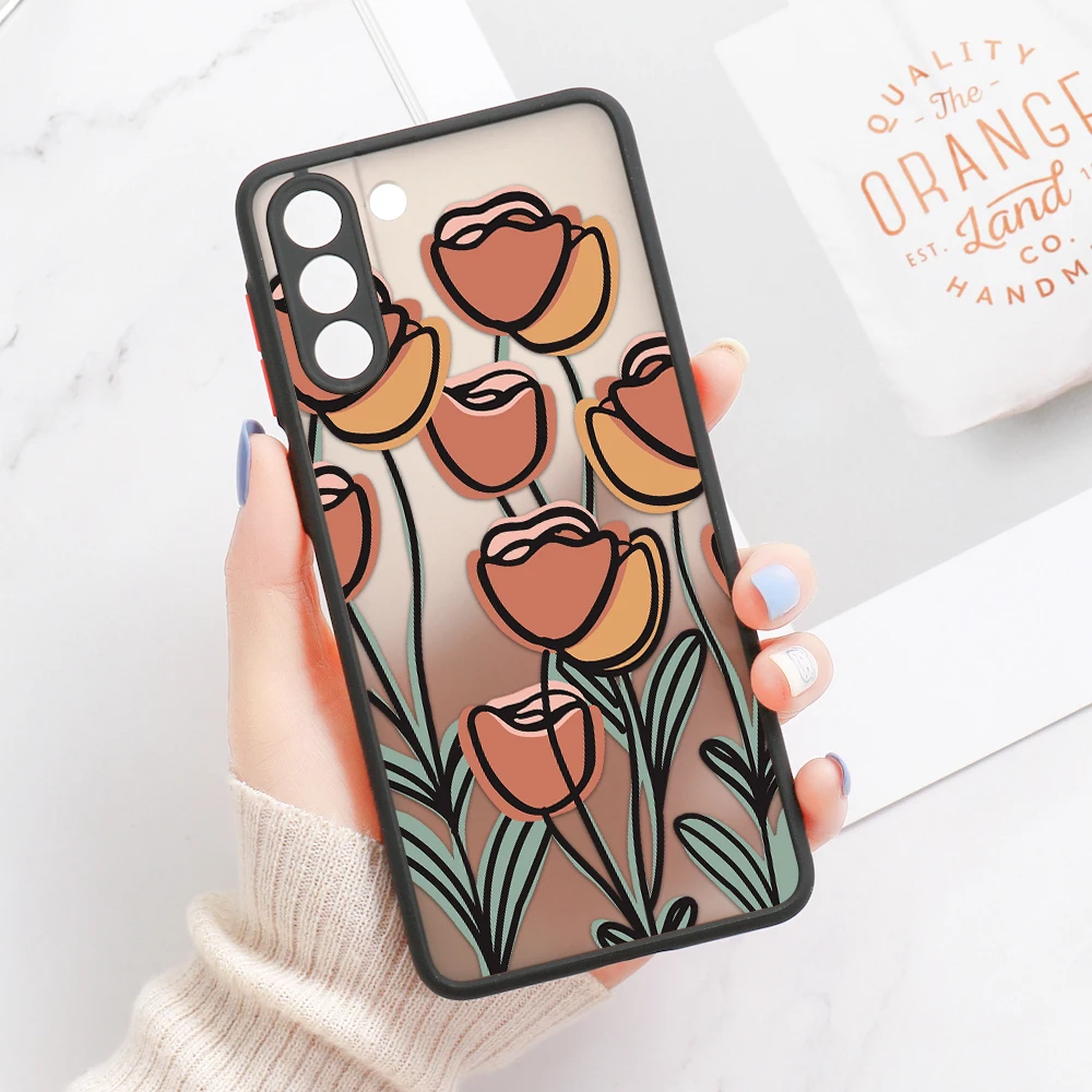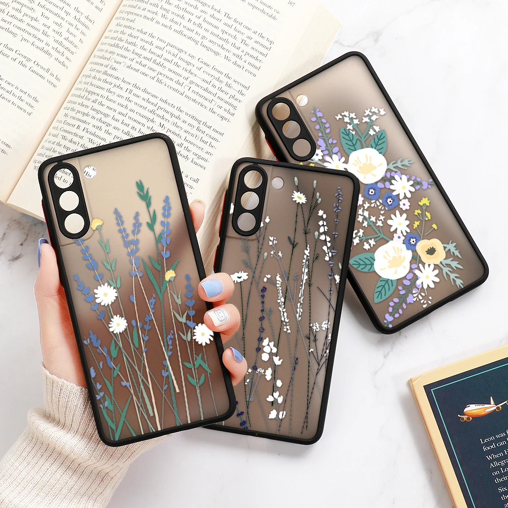 Твердый чехол с цветочным рисунком для Samsung S21, Ультратонкий за...