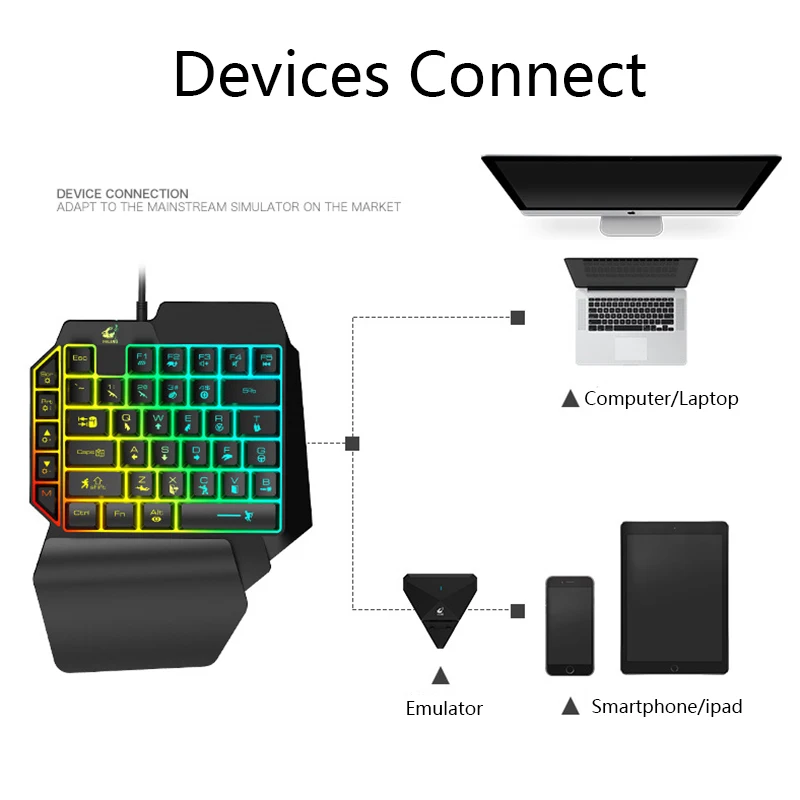 1. Название продукта: iMICE игровая клавиатура с одной рукой2. Срок службы кнопки: более 50 миллионов3. Ток: ниже 200 мА4.USB кабель: 1,5 м5. Вес: 360 г6. Подключение: USB7. Ключи: 39