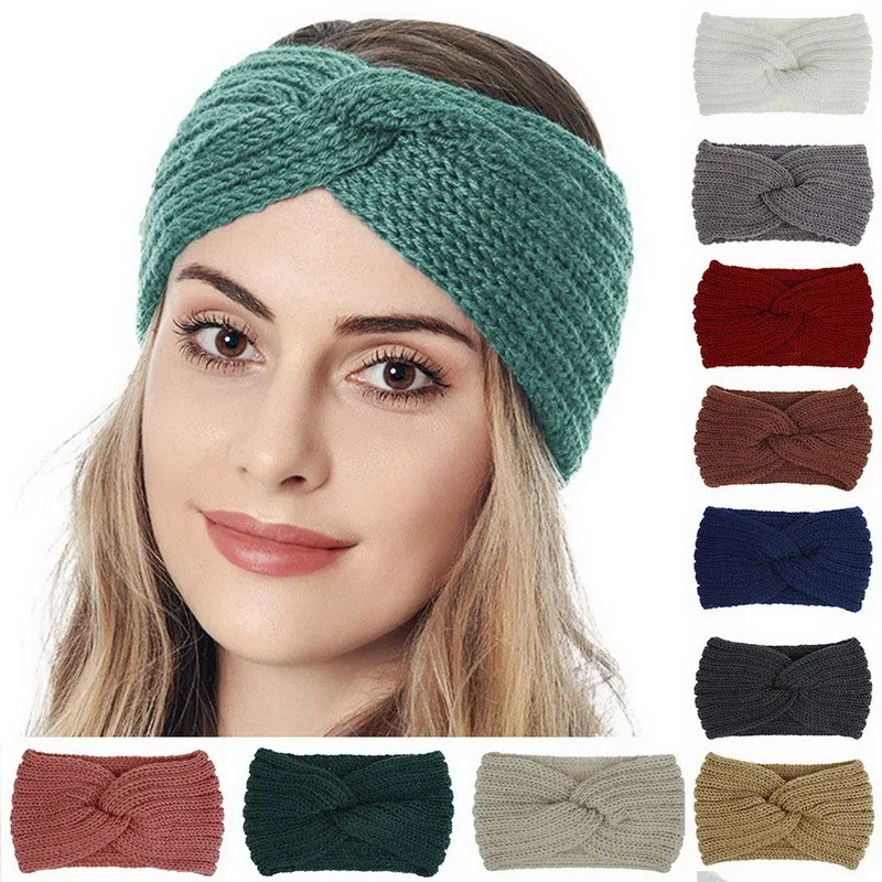 Вязаная повязка на голову с узлом для женщин, осенне-зимние аксессуары для волос для девочек, головные уборы для девочек, эластичная повязка для волос, аксессуары для волос