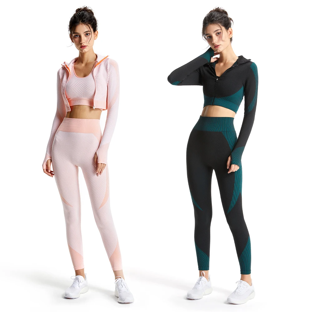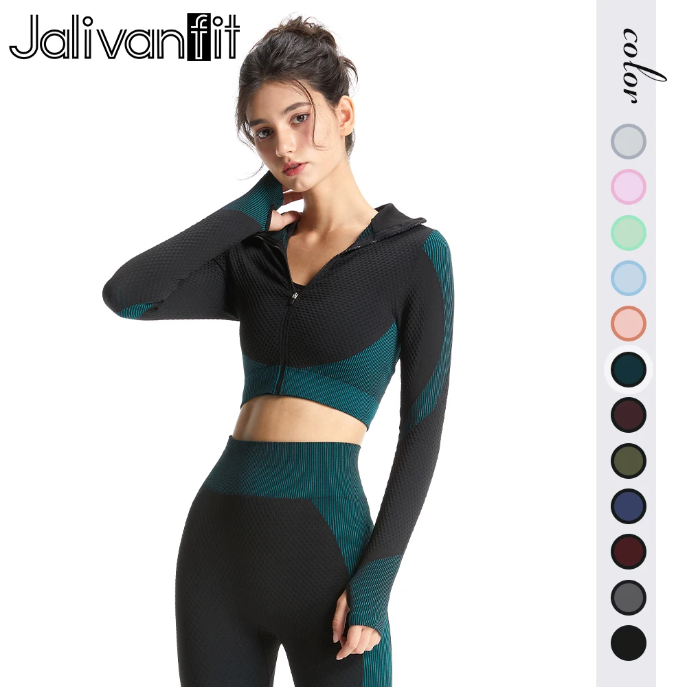 Комплект для йоги Jalivanfit из 3 предметов, бесшовный Женский спортивный костюм, одежда для спортзала, фитнеса, топ, леггинсы с высокой талией, тренировочный костюм для бега