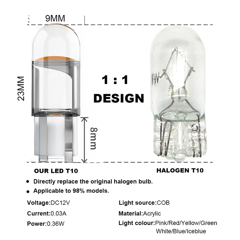 Автомобильный светильник W5W Led T10, 10x, стекло COB для значков D...