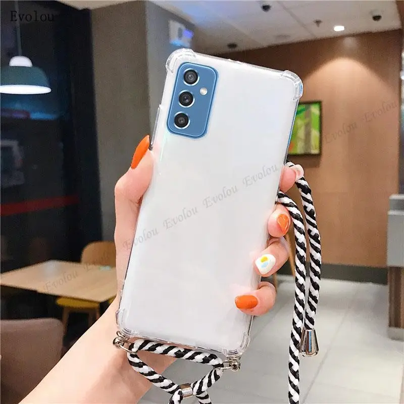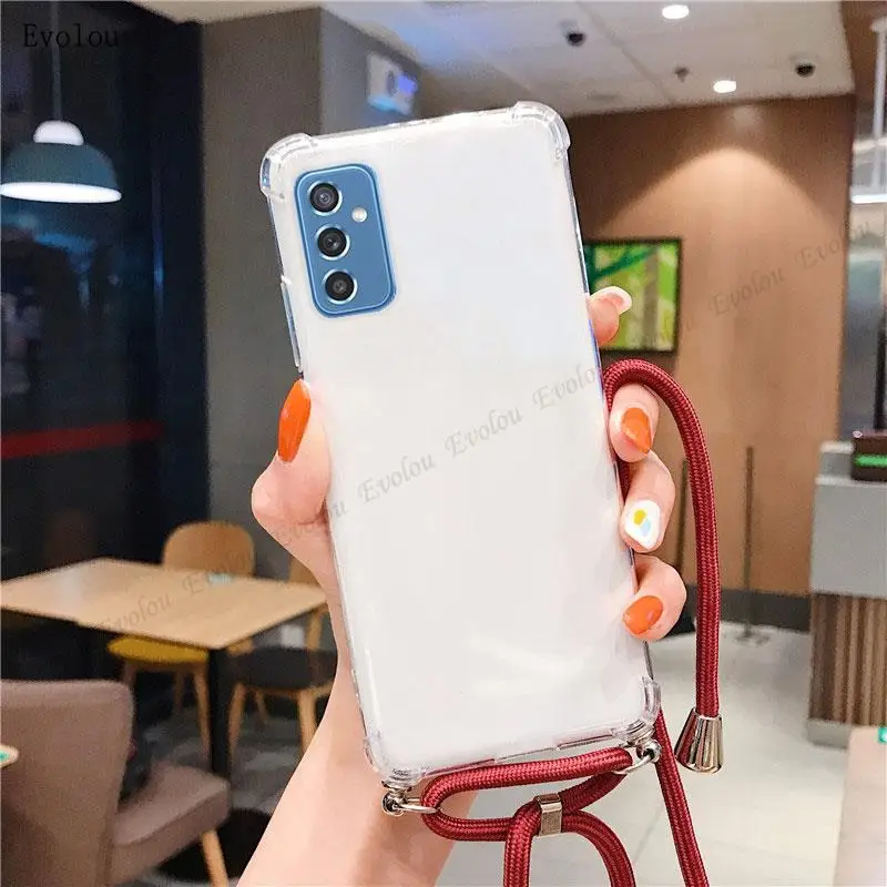 Прозрачная подушка безопасности ожерелье ремешок веревка Чехол для Samsung M52 M32 M22 M62 F22 Мягкий ТПУ противоударный чехол для телефона для Galaxy A22 F62