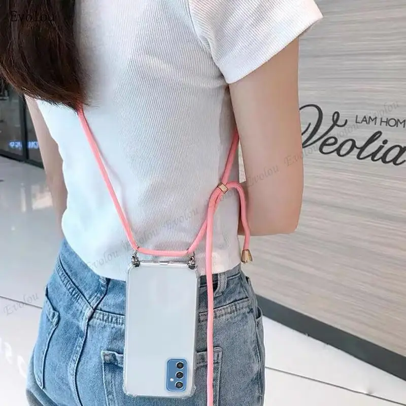 Прозрачная подушка безопасности ожерелье ремешок чехол для Samsung M52 M32 M22 M62 F22 Мягкий ТПУ ударопрочный чехол для телефона для Galaxy A22 F62