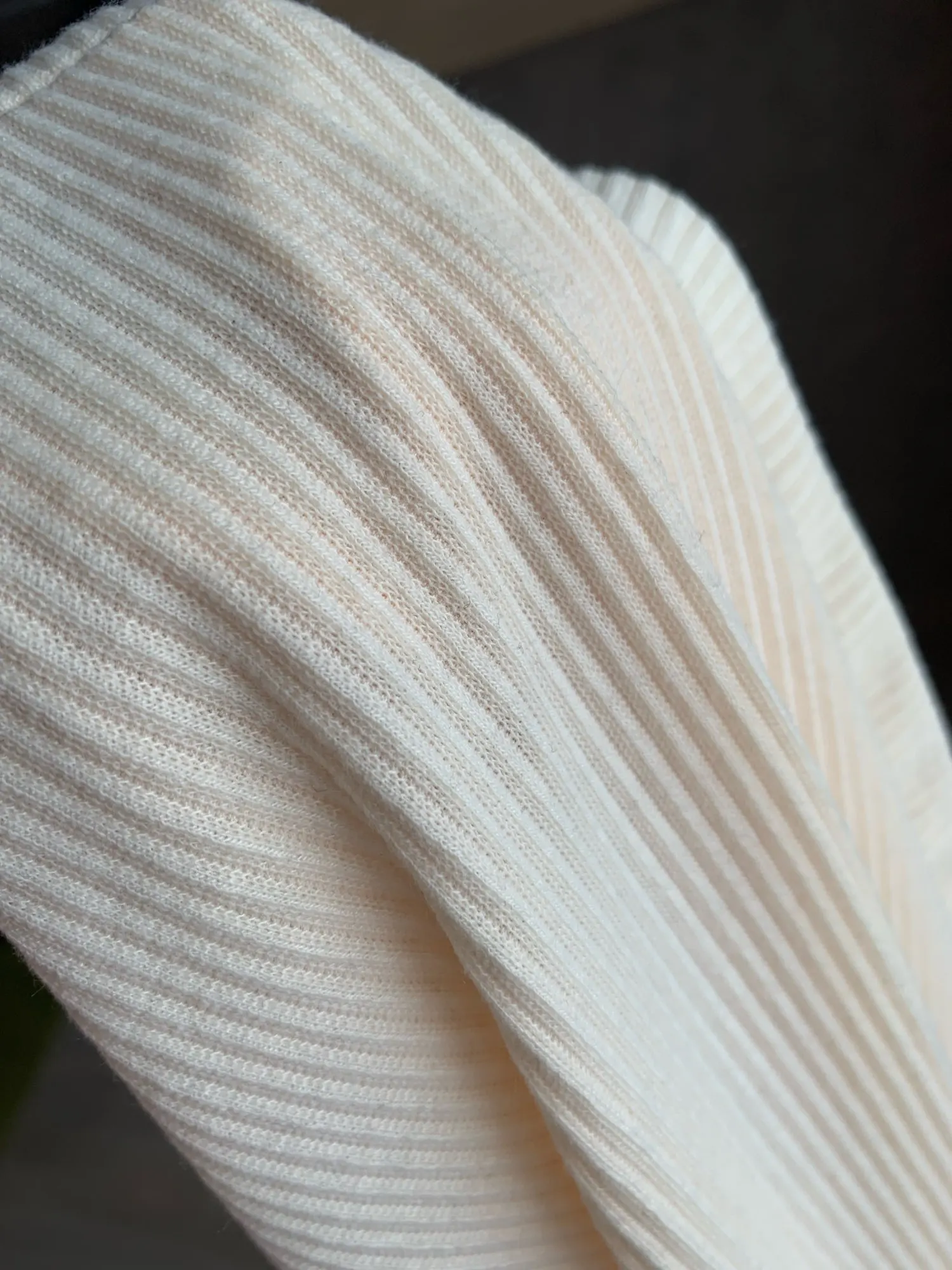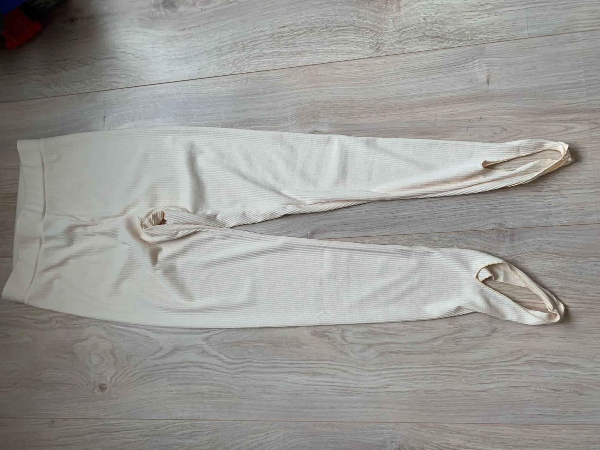 Эти леггинсы полное разочарование: фактура, цвет, размер. Трикотаж очень тонкий, цвет совершенно не такой как на фото (молочный на фото и непонятный в натуре: то ли желтый, то ли ???? Не пойму какой). Штрипки очень высокие и широкие снизу, неудобные. Под коленками собираются гармошкой. И куда и с чем их носить-ума не приложу, пока. С продавцом не общалась)))