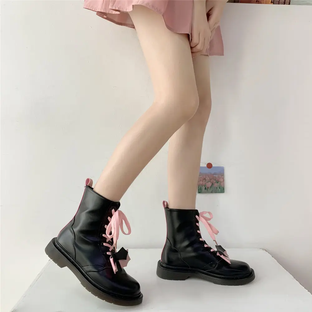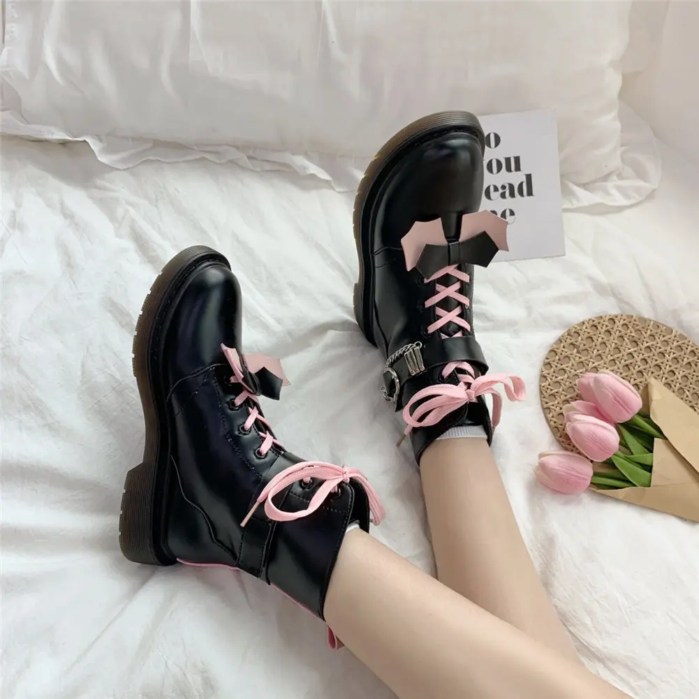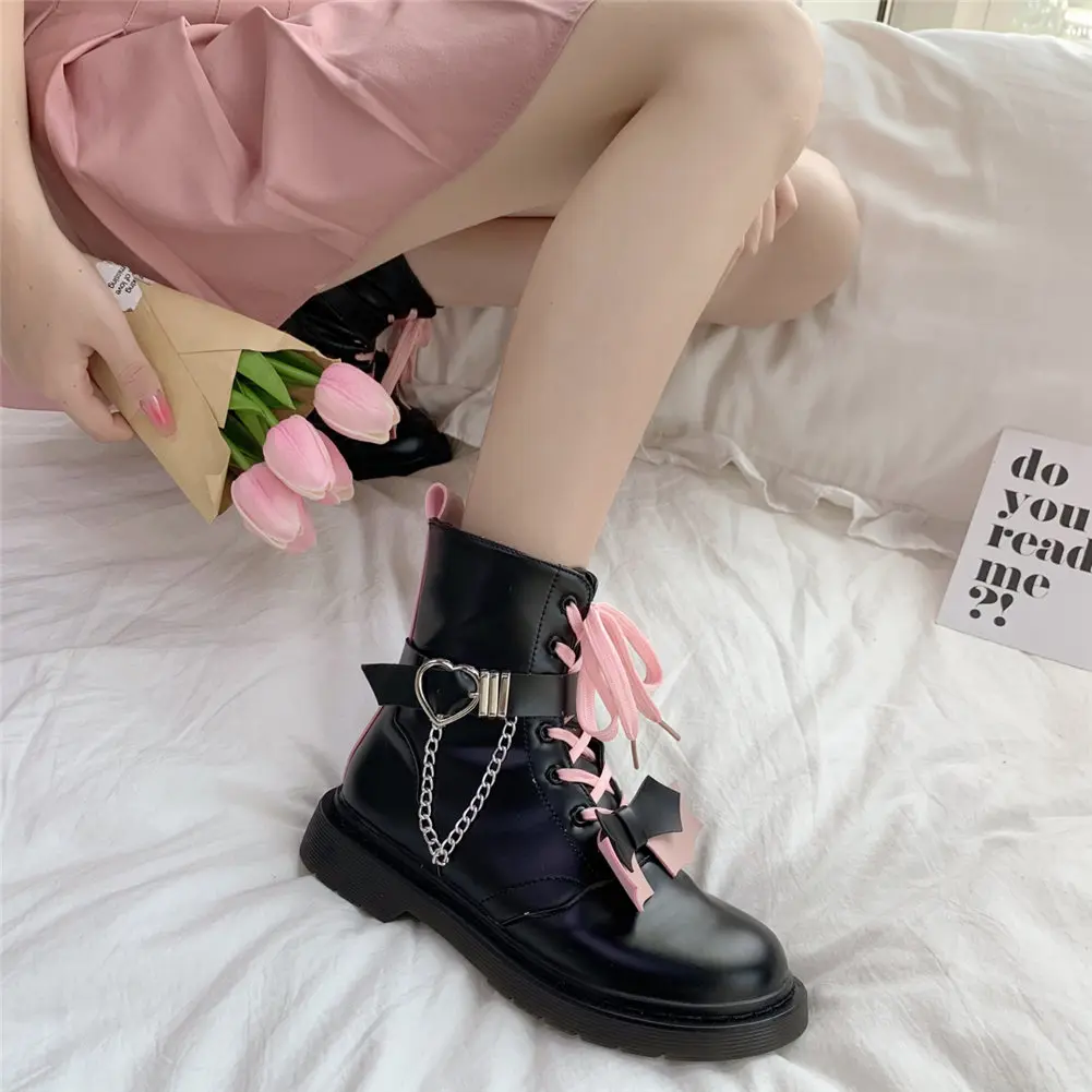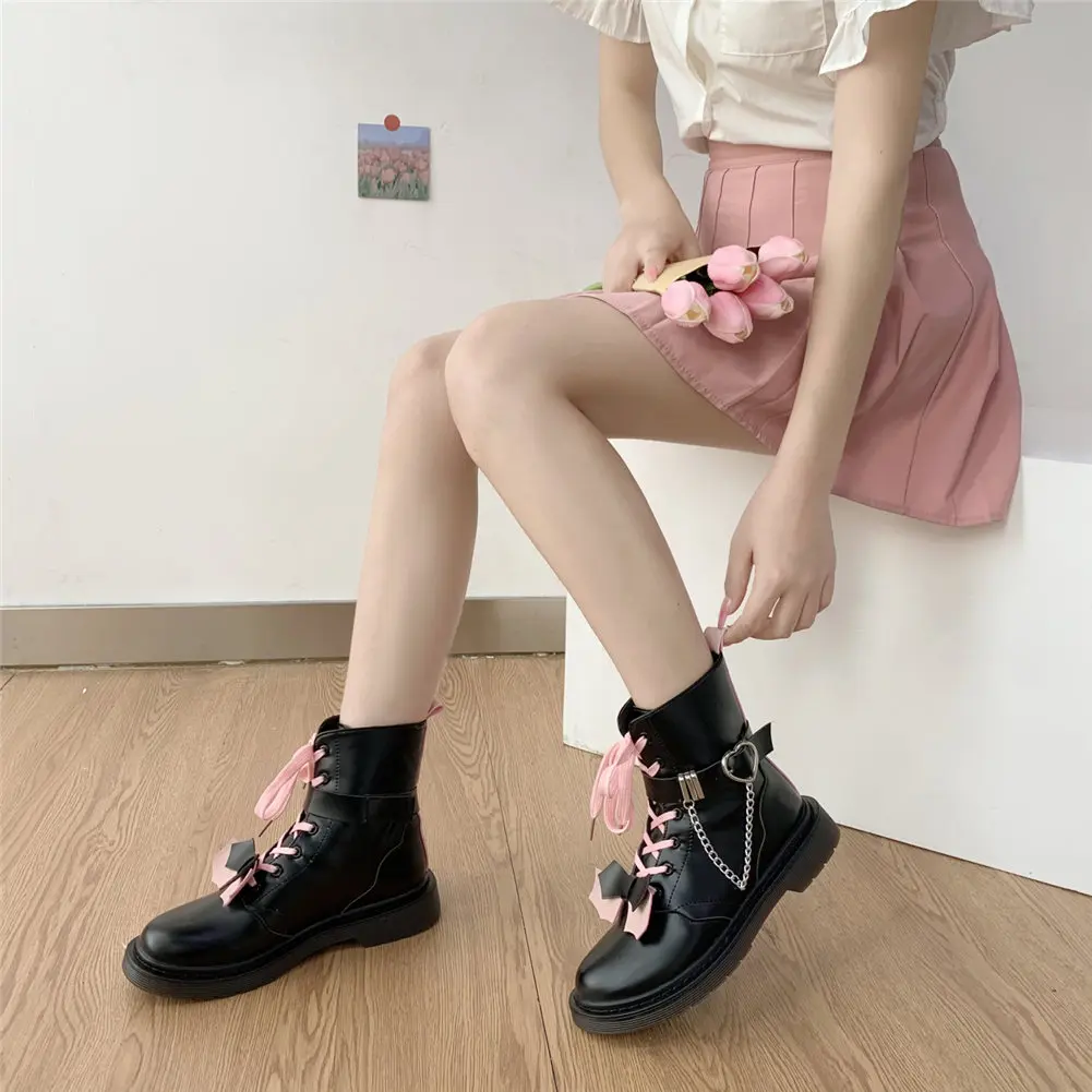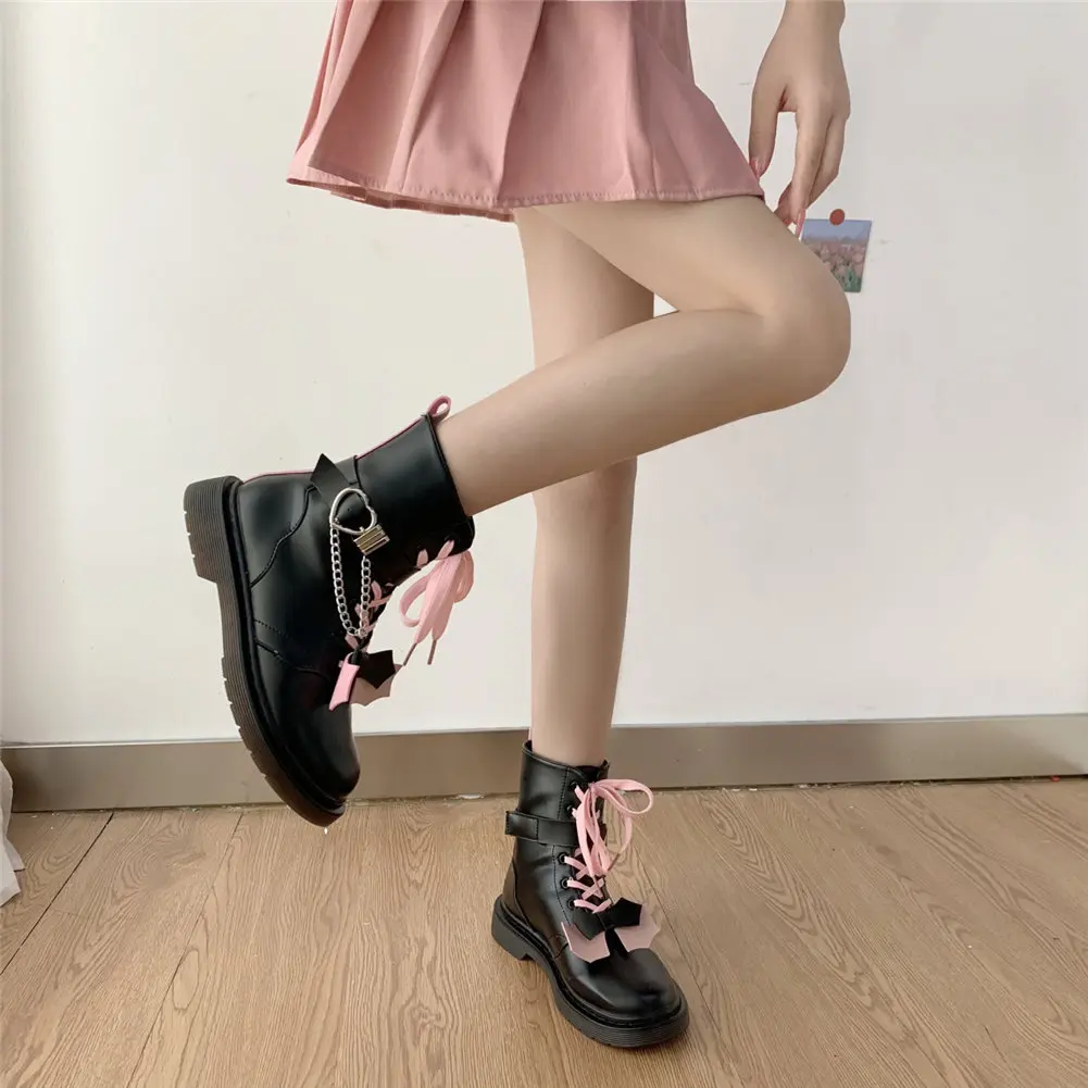 Женские ботинки на массивной подошве GIGIFOX, удобные повседневные ботинки с цепочкой в готическом стиле, с черной пряжкой, с галстуком-бабочкой, милая Лолита