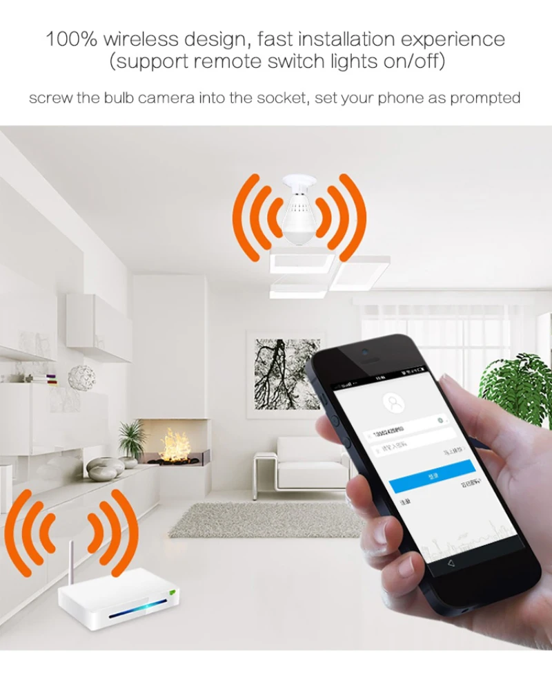 IP светильник видеонаблюдения рыбий глаз с поддержкой Wi-Fi, 960P