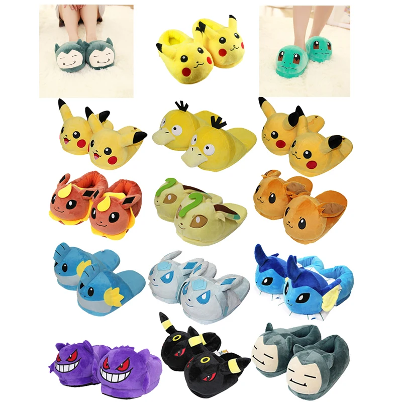 Плюшевые хлопковые тапочки с покемонами; Pikachu Eevee Leafeon Glacia Umbreon Snorlax Charmander Psyduck Mudkip; Обувь в стиле аниме; Подарки