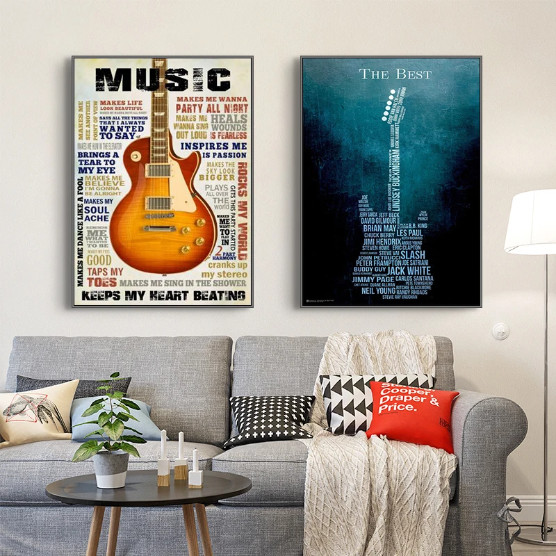 Настенная Картина на холсте с изображением гитар, инструментов, коллекций музыки, цитаты, живопись, домашний декор, модульный постер в скандинавском стиле для гостиной