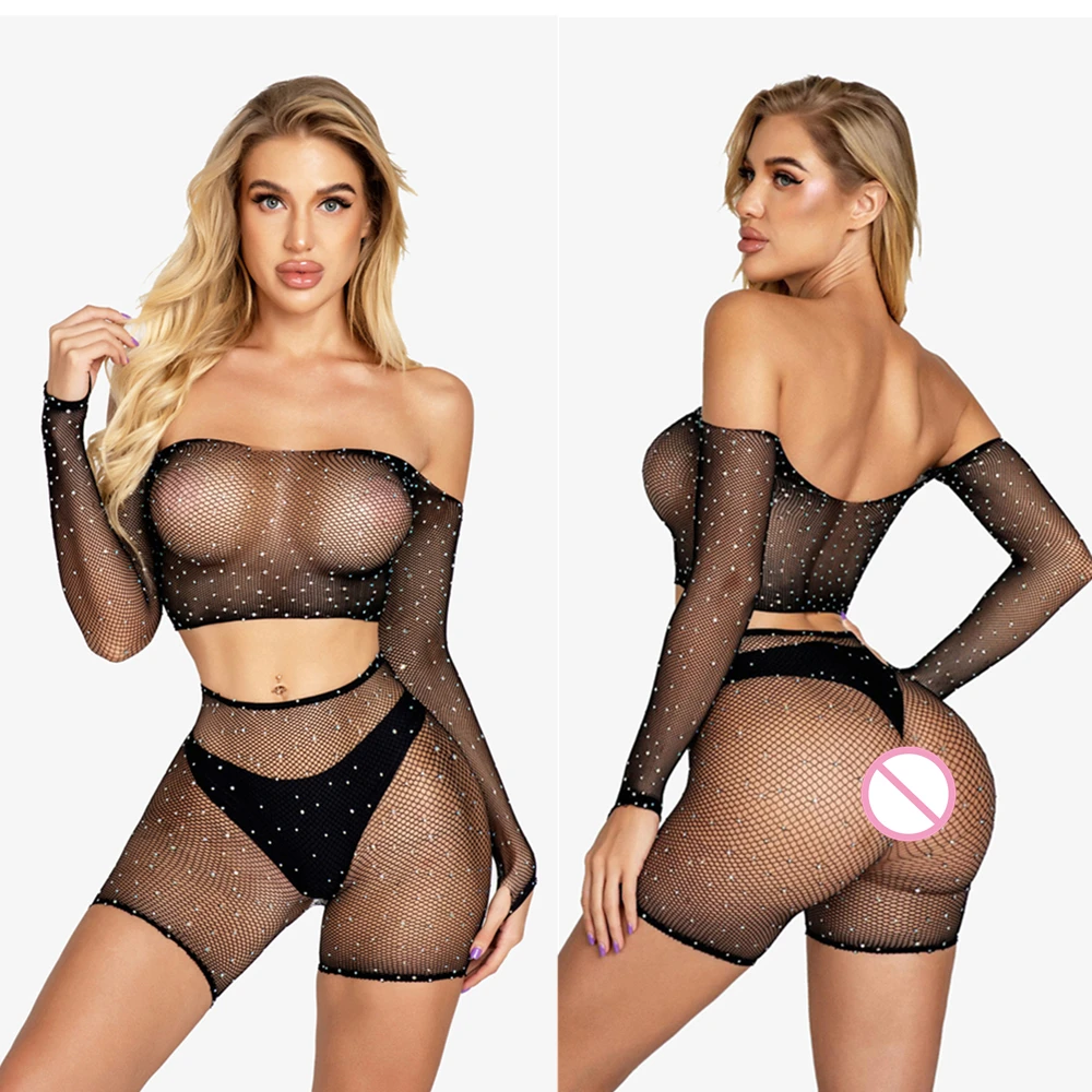 Сетчатое боди с бриллиантами, сексуальное нижнее белье, боди с открытой промежностью, фетиш, порно, сексуальное женское нижнее белье, эротическое боди