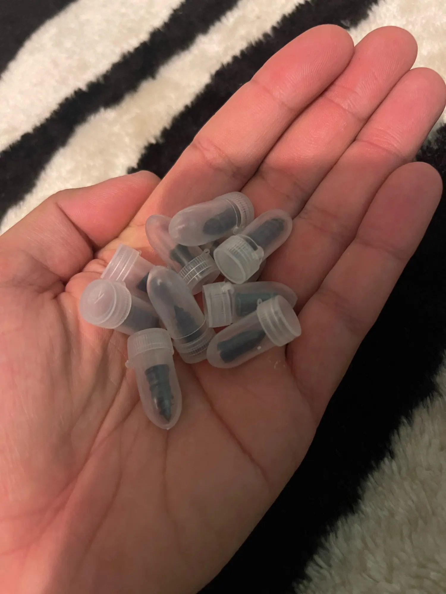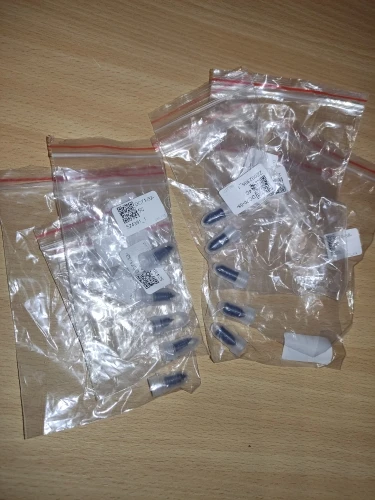 Доставка 24 дня в Москву по почте РФ. Не доложили: вместо 10 штук только 9: 4 больших и 5 маленьких! Металлические конические шурупы в верхней части жесткий пластик и обмазаны клеем, упакованы в маленькие пробирки.