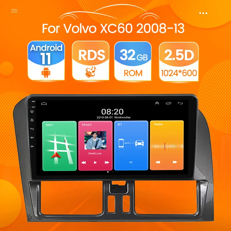 Автомагнитола HD 2 + 32 ГБ Android 11 для Volvo XC60 I 1 2008-2017, мультимедийный проигрыватель с GPS-навигацией, стерео устройство, Wi-Fi, RDS видео